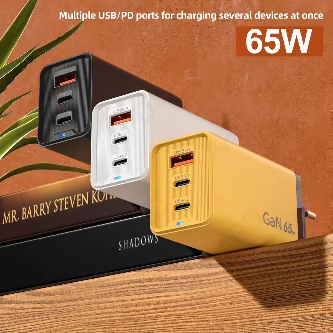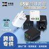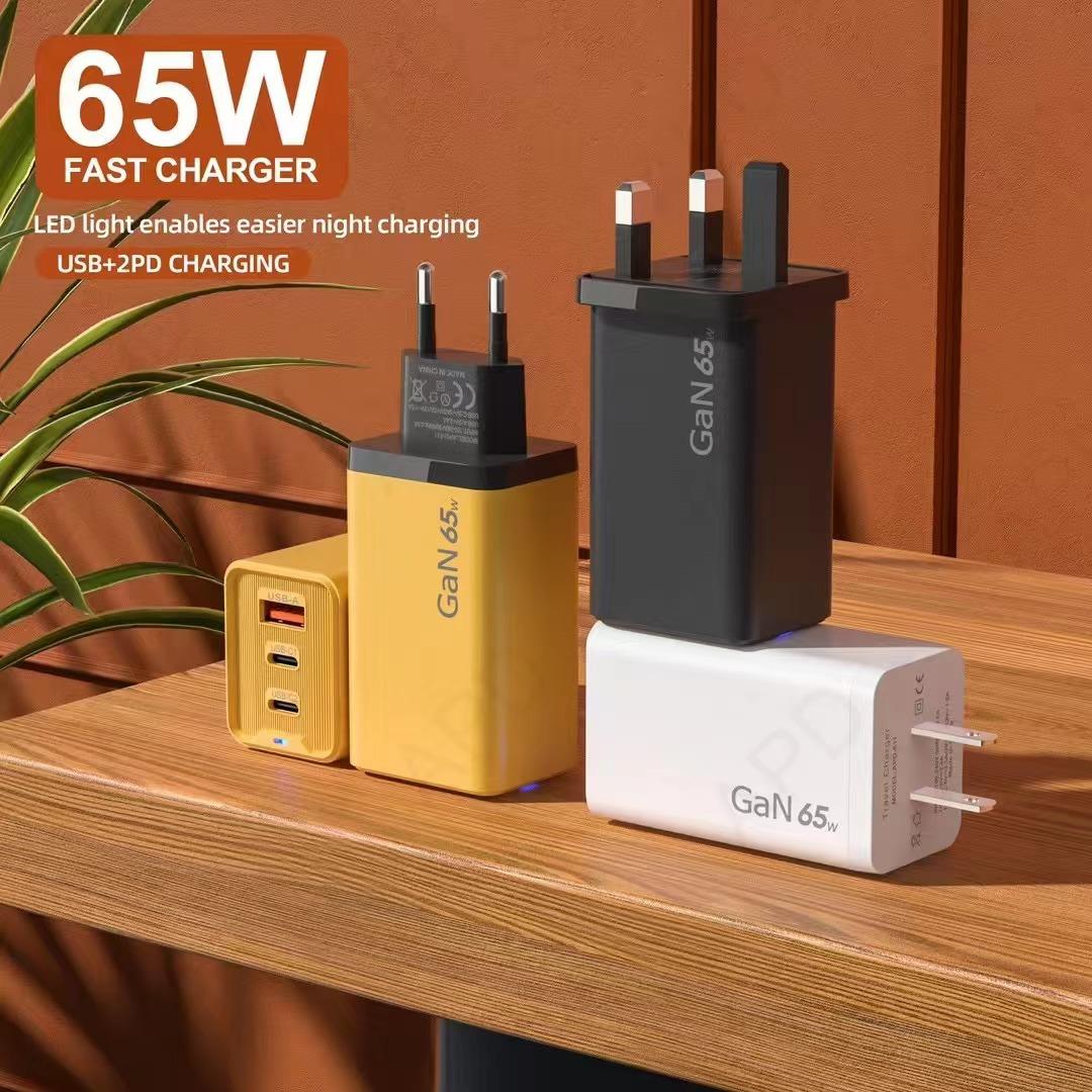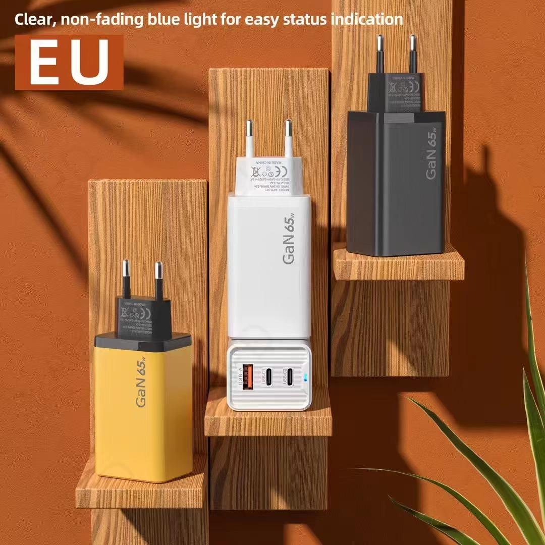 Cargador de Carga Rápida para Teléfono Móvil de 65W Transfronterizo con Luz USB + Doble Tipo-C Multipuerto Carga Rápida PD Cabezal de Carga Europeo y Americano