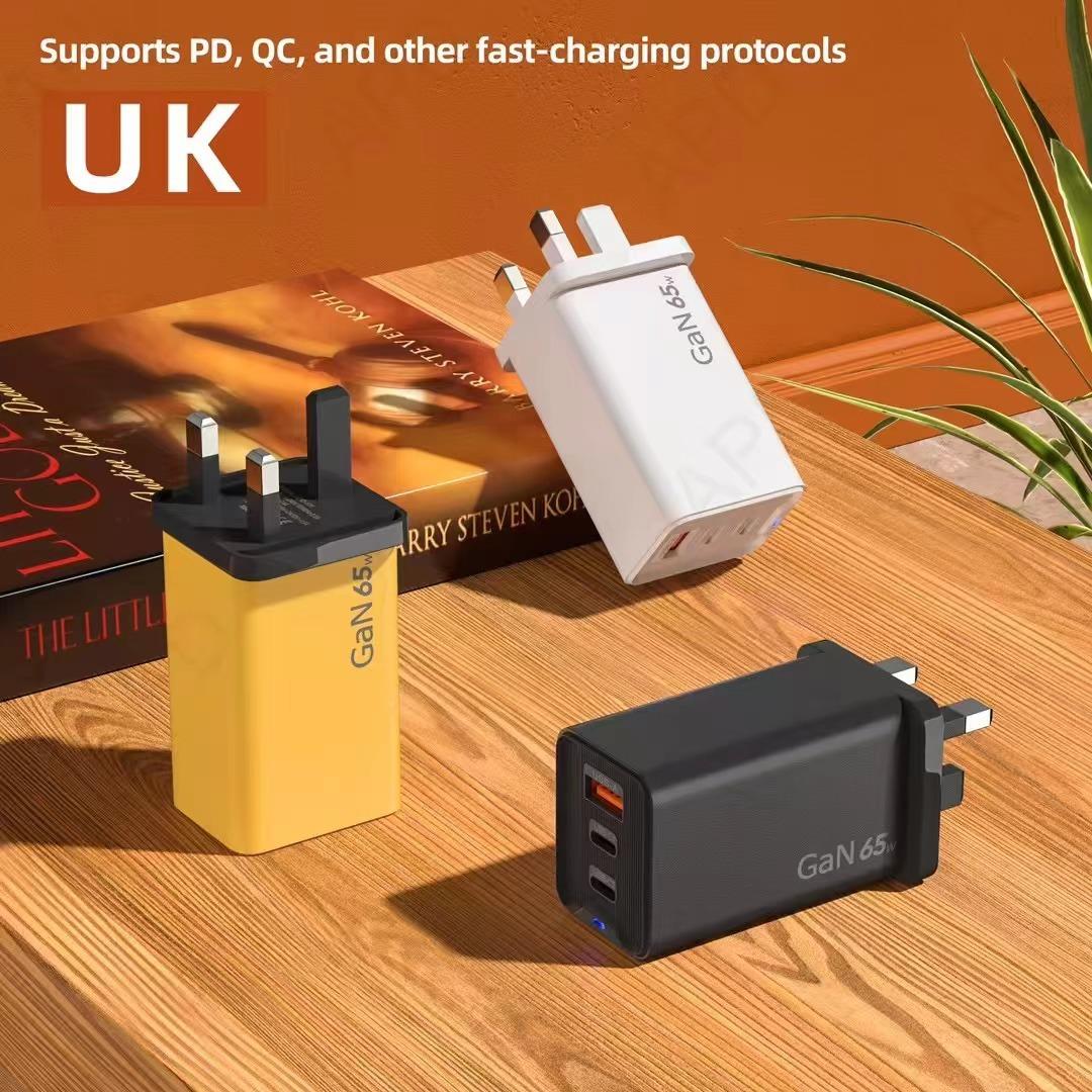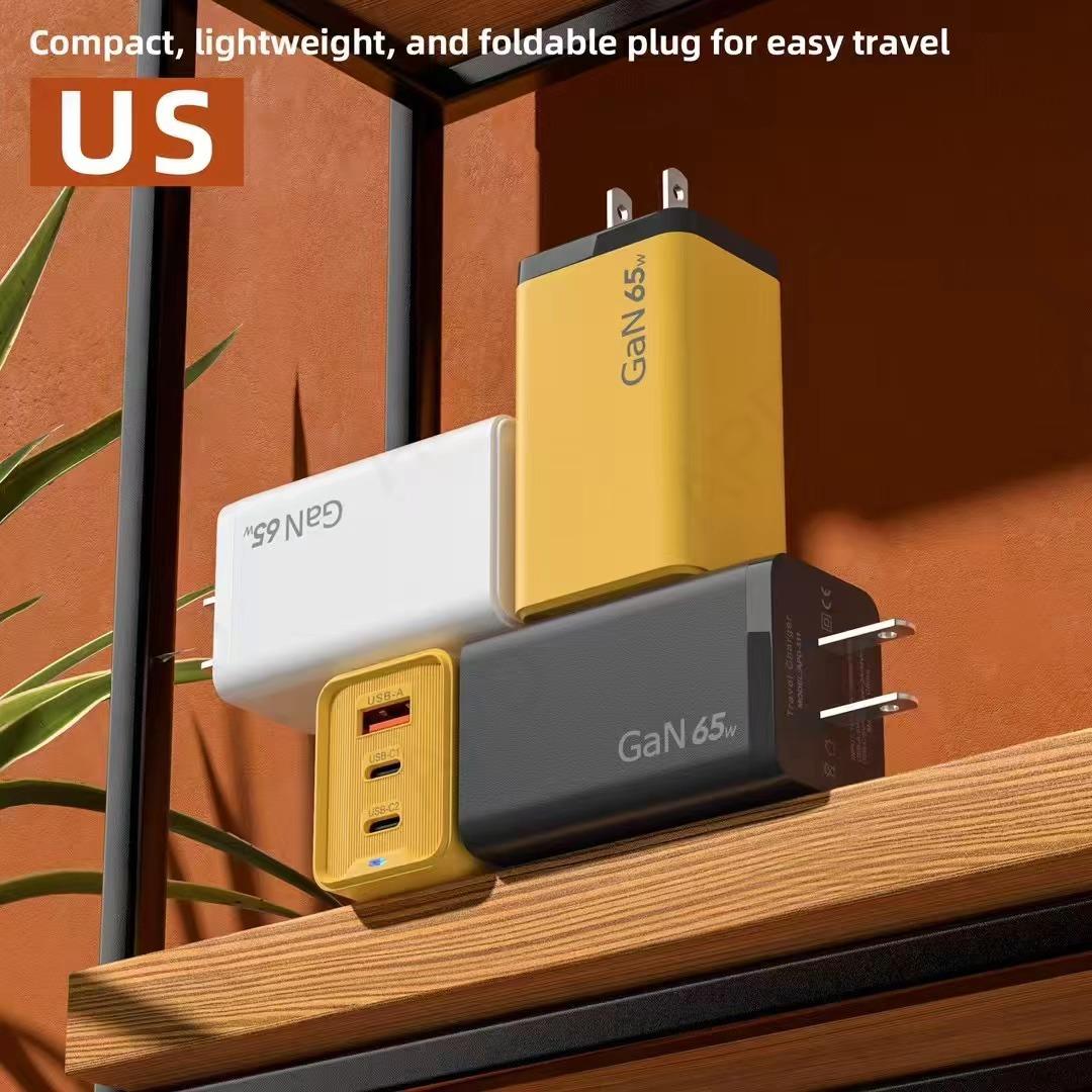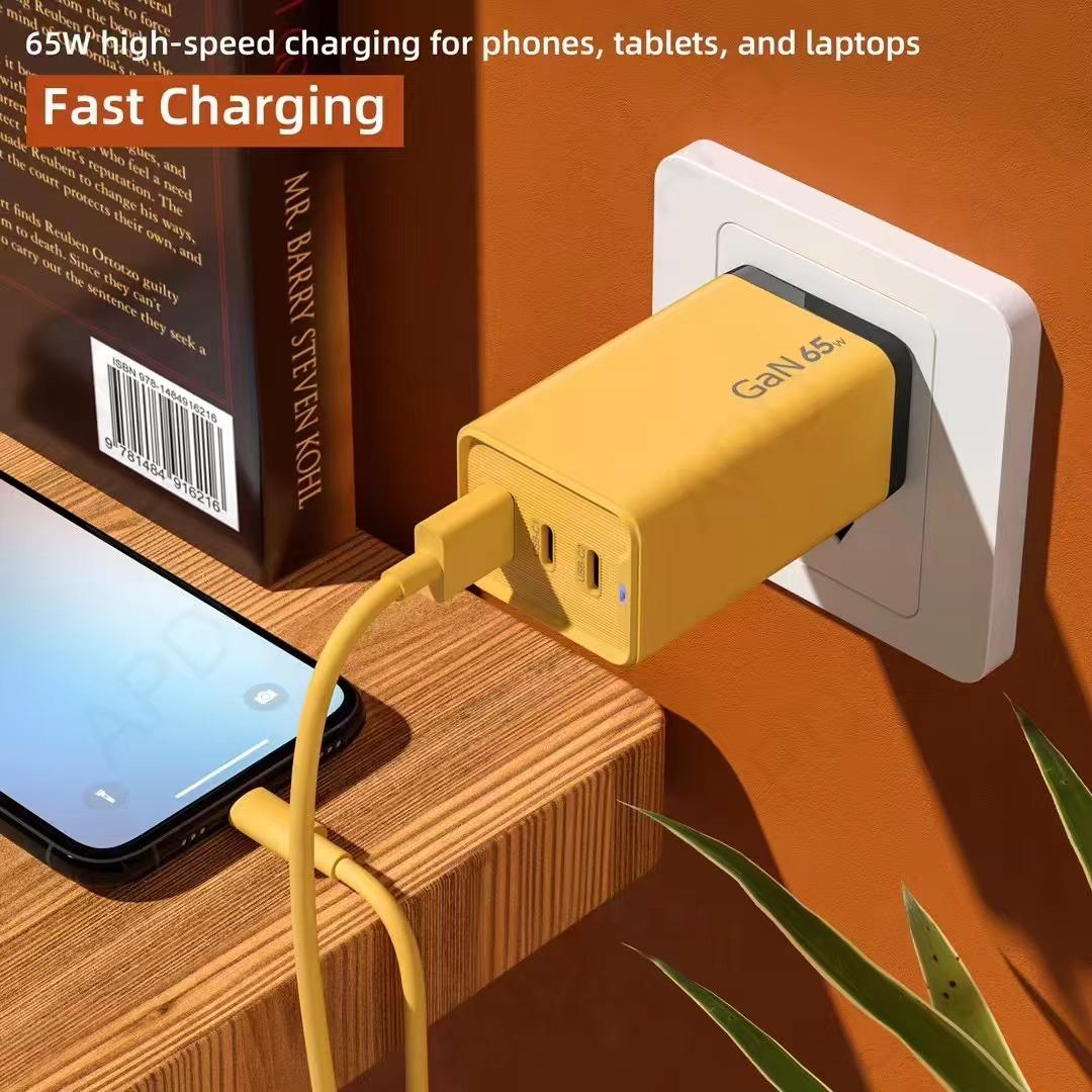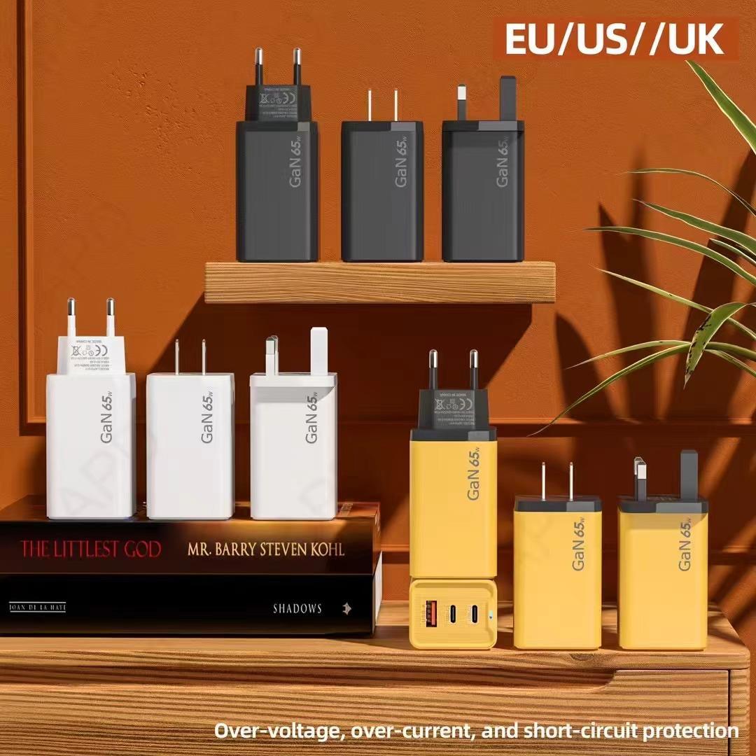 Cargador de Carga Rápida para Teléfono Móvil de 65W Transfronterizo con Luz USB + Doble Tipo-C Multipuerto Carga Rápida PD Cabezal de Carga Europeo y Americano