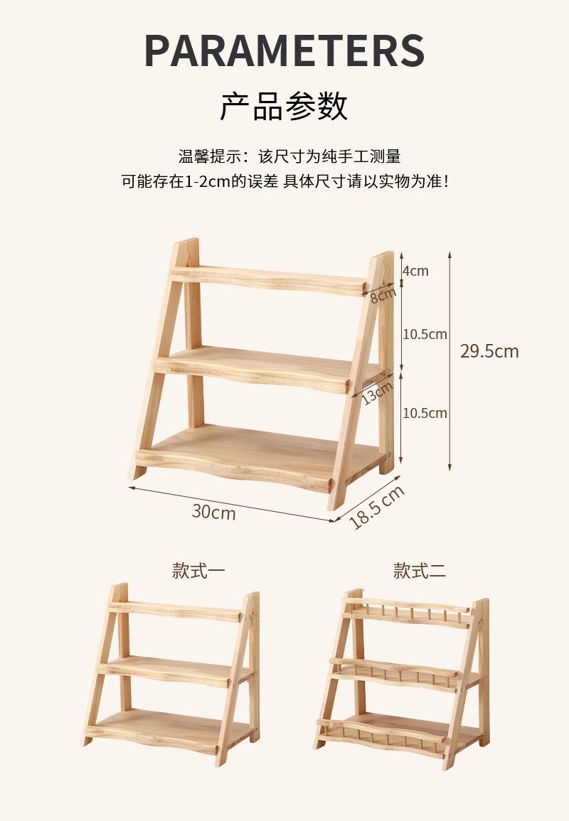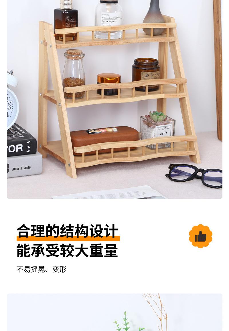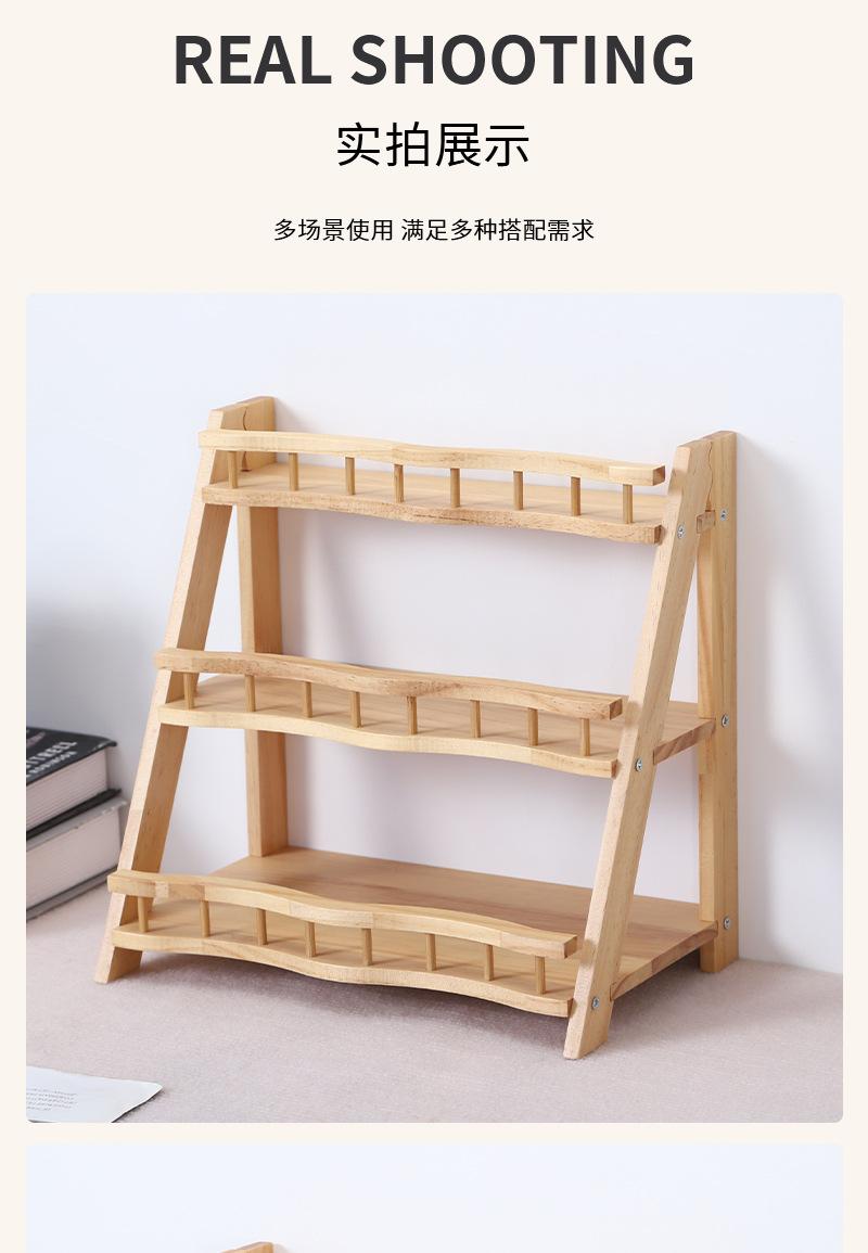 Estante de almacenamiento de madera en existencia, estante escalonado para condimentos de cocina, estante decorativo con acabado multicapa para cosméticos de dormitorio.
