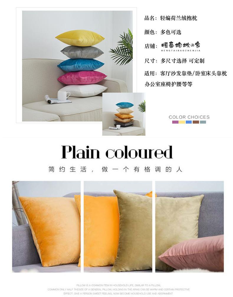 Cojín de Terciopelo Holandés Amazon Popular Terciopelo de Color Puro Terciopelo Escandinavo Ins Oficina Funda de Almohada para Coche