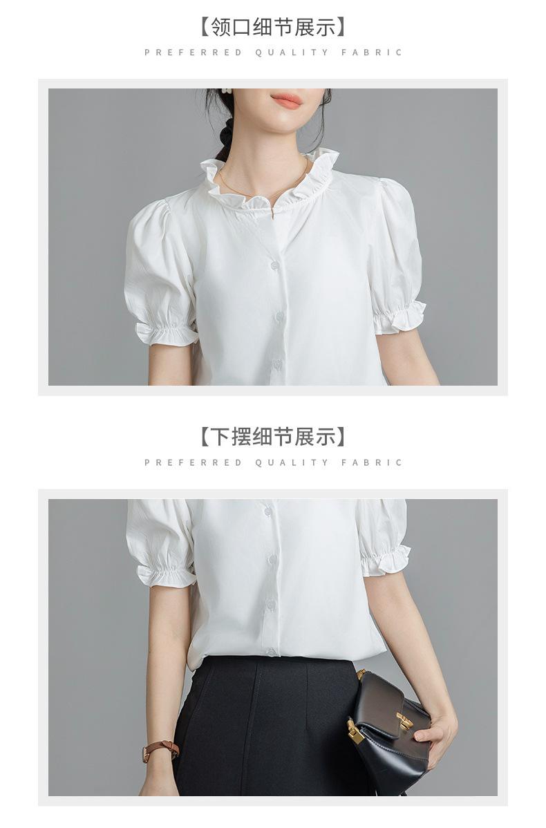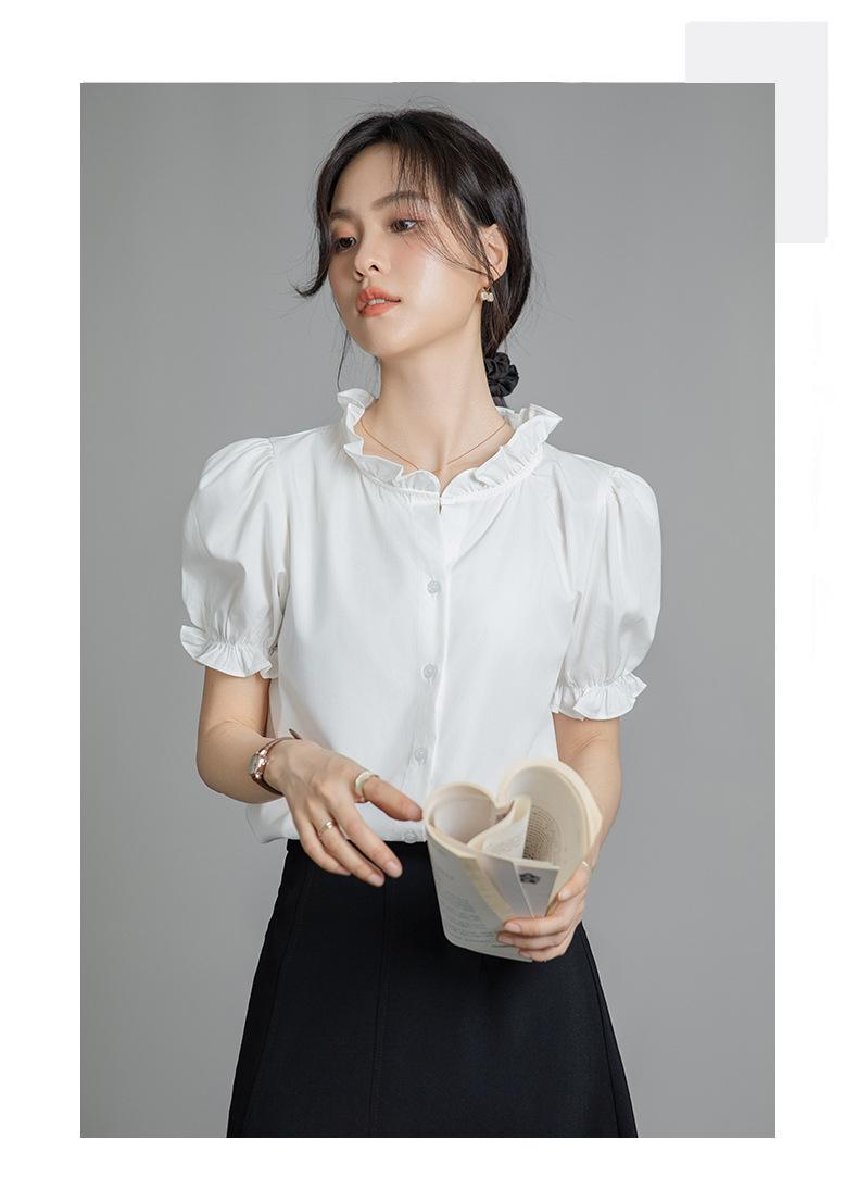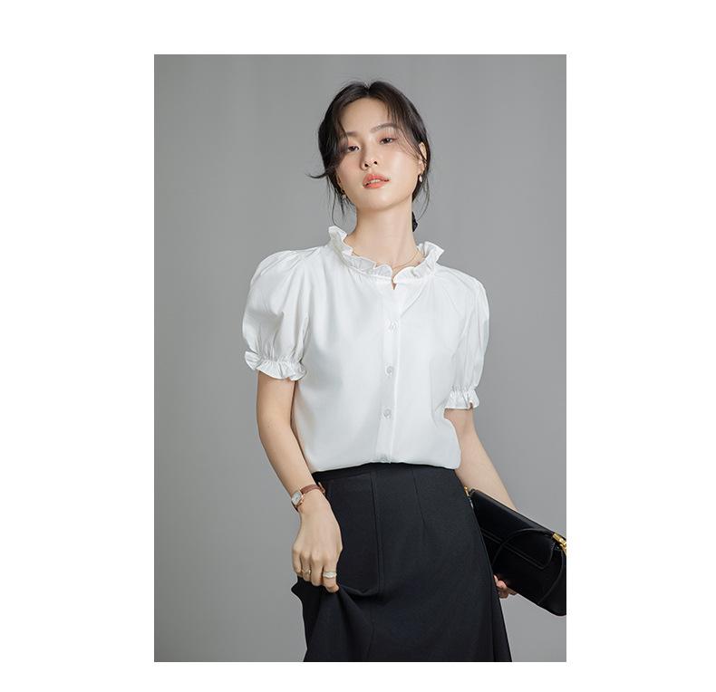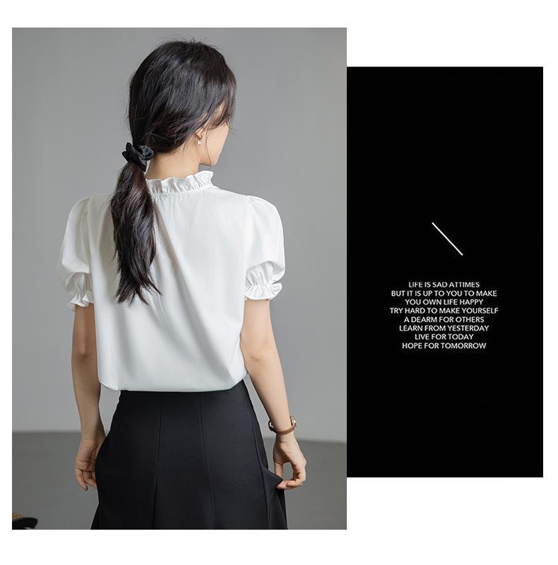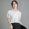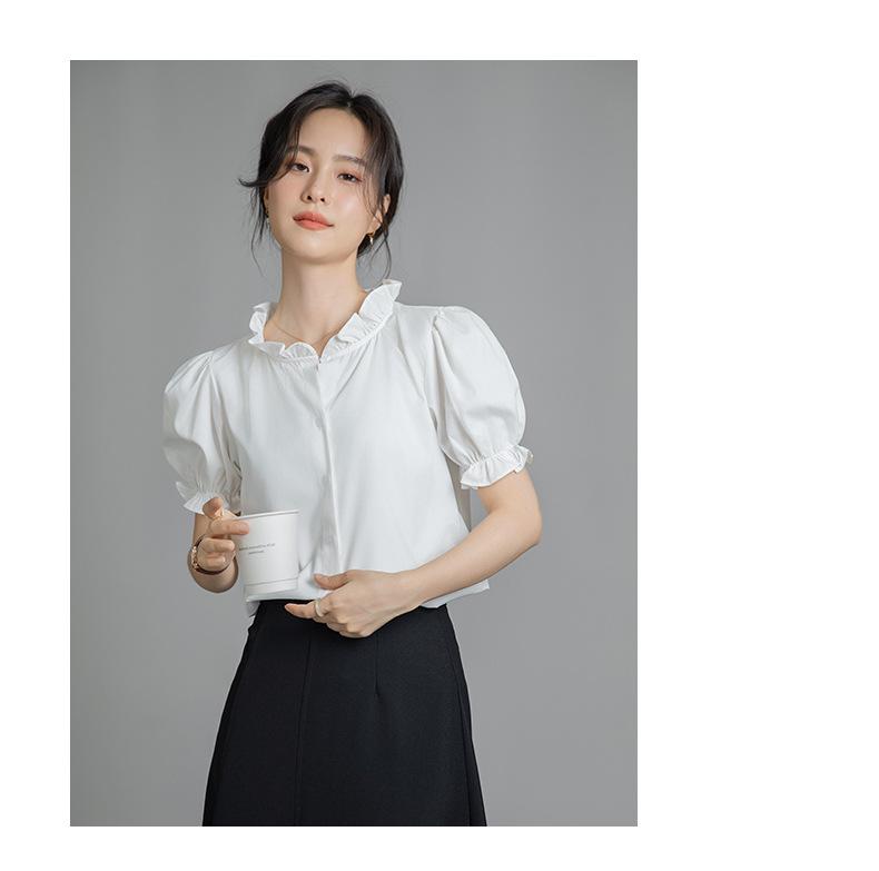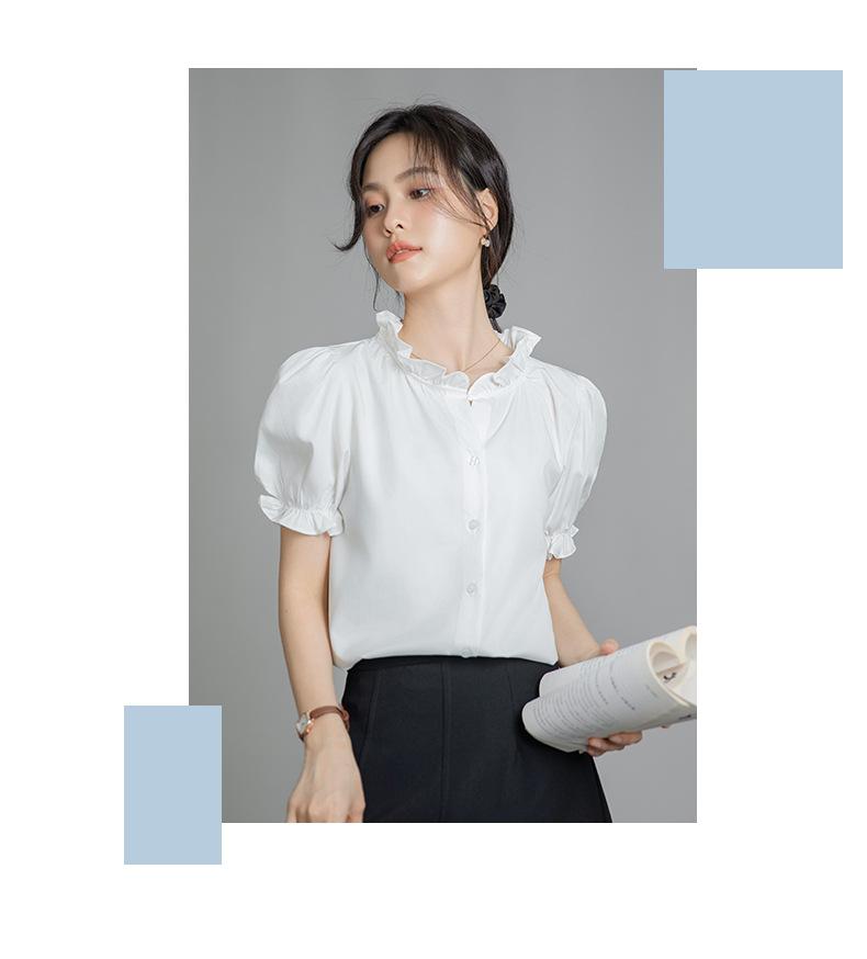 2025 Nuevo Estilo de Verano Estilo Francés Cuello de Oreja Ropa de Trabajo Slim Blanco Manga Abullonada Camisa de Manga Corta Top de Mujer