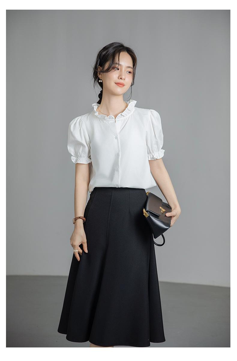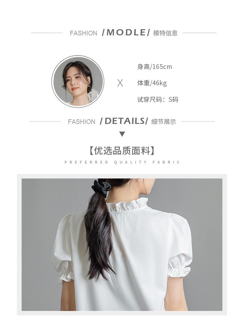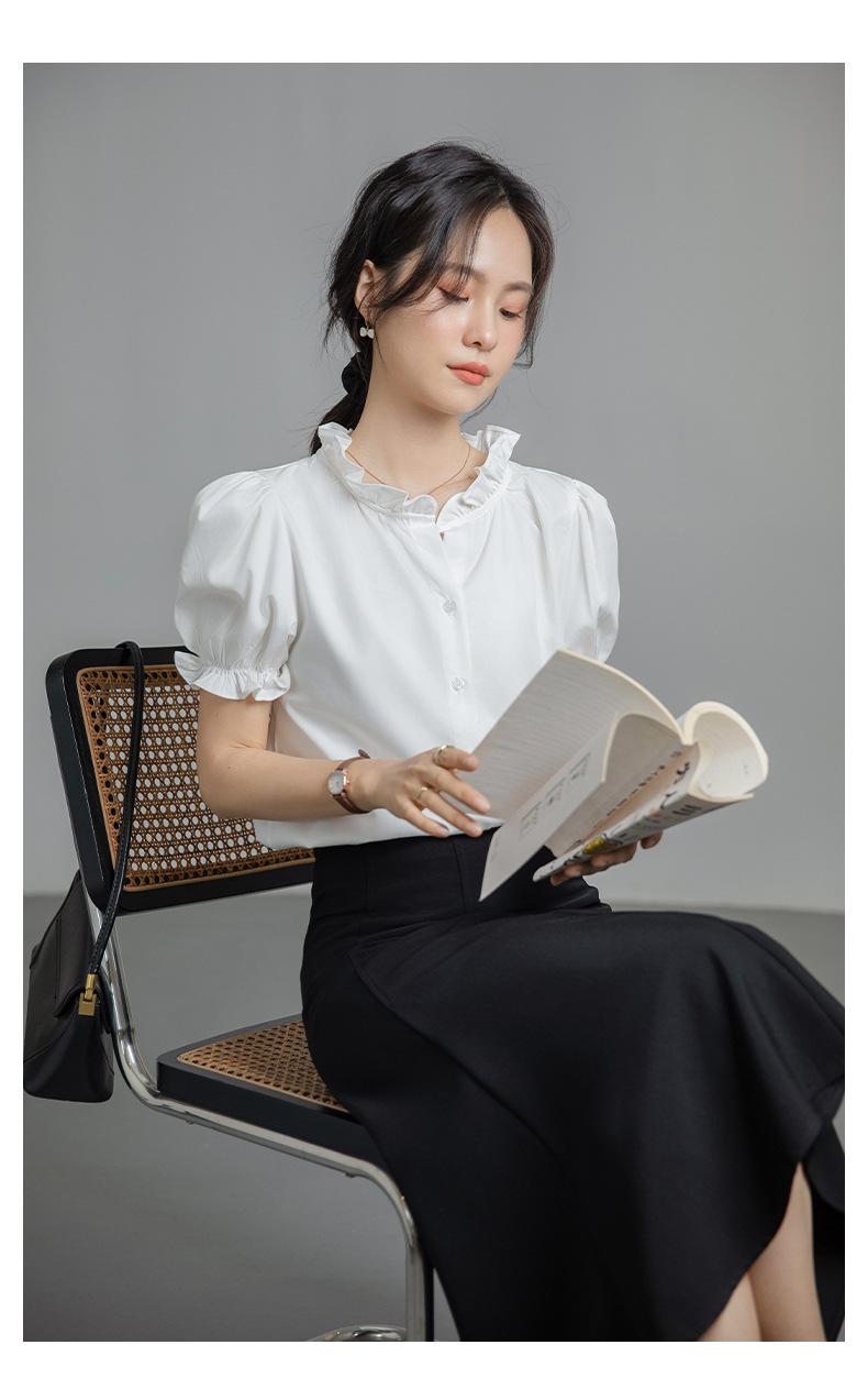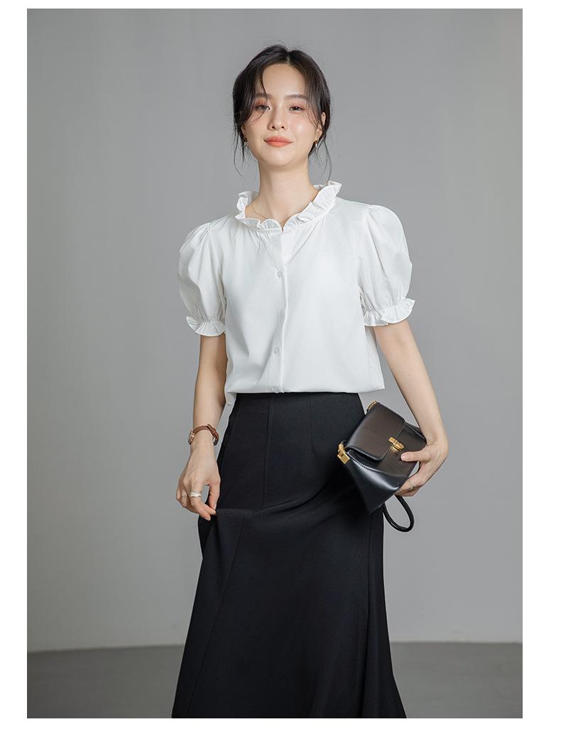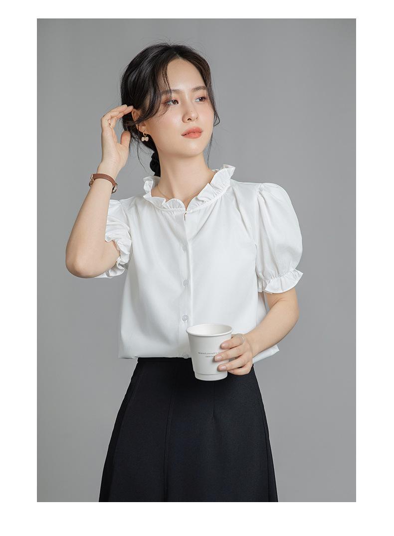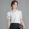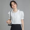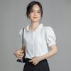 2025 Nuevo Estilo de Verano Estilo Francés Cuello de Oreja Ropa de Trabajo Slim Blanco Manga Abullonada Camisa de Manga Corta Top de Mujer