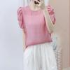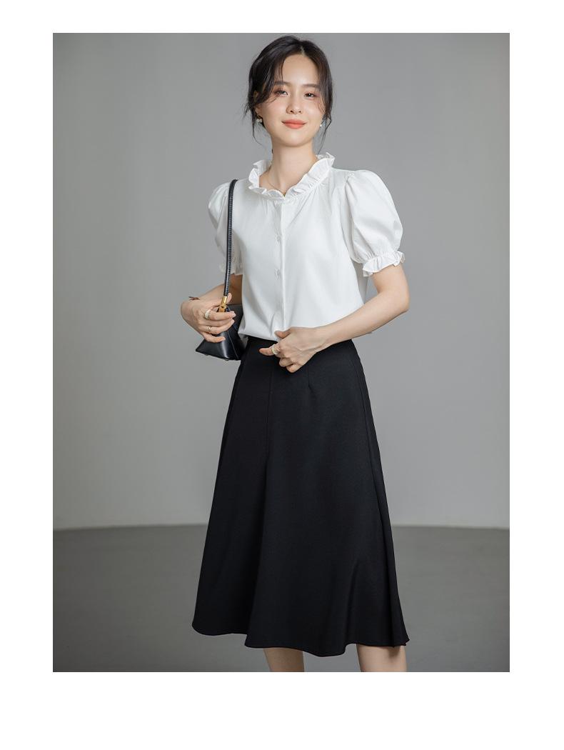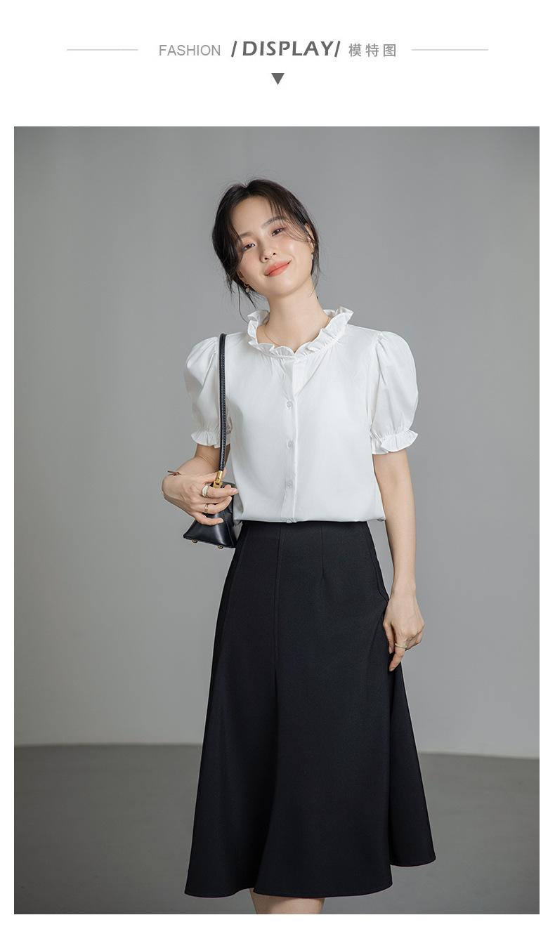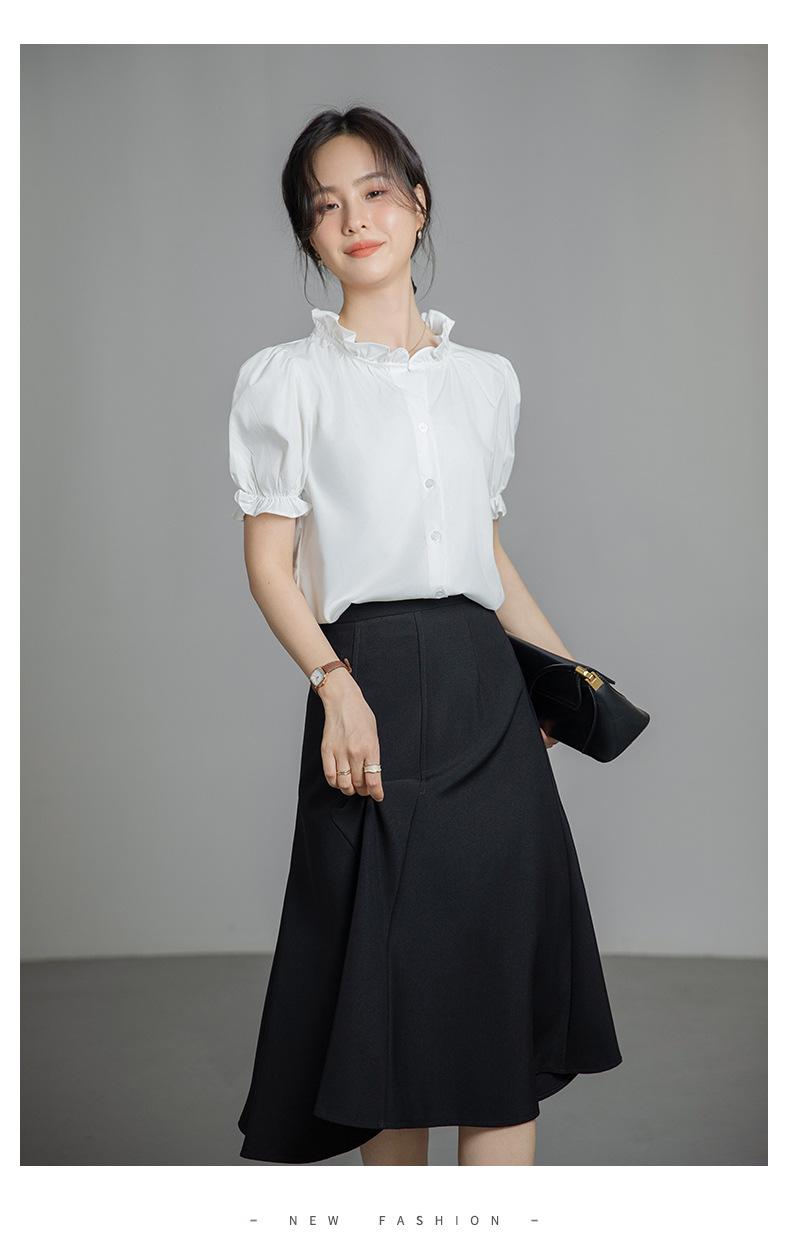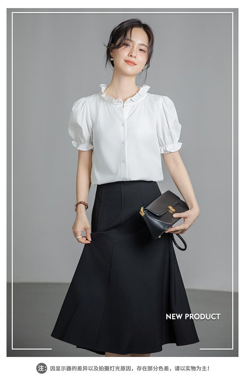 2025 Nuevo Estilo de Verano Estilo Francés Cuello de Oreja Ropa de Trabajo Slim Blanco Manga Abullonada Camisa de Manga Corta Top de Mujer