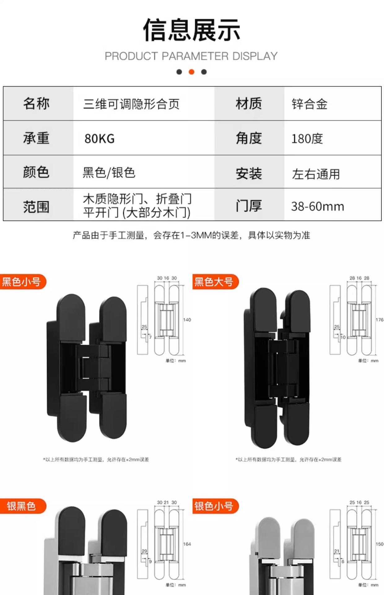 Three-dimensional hinge, invisible door hinge, invisible hinge, folding door hinge