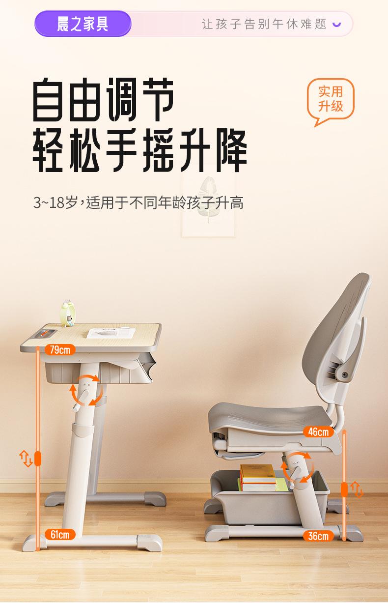 Flagship model - wood gray [reversible bed + table and chair hand lift + storage frame]