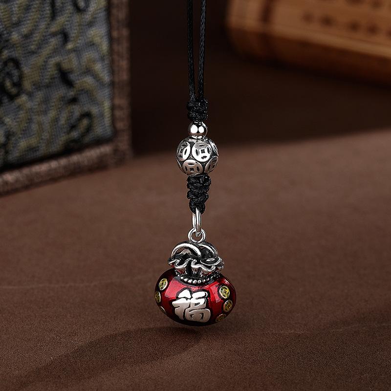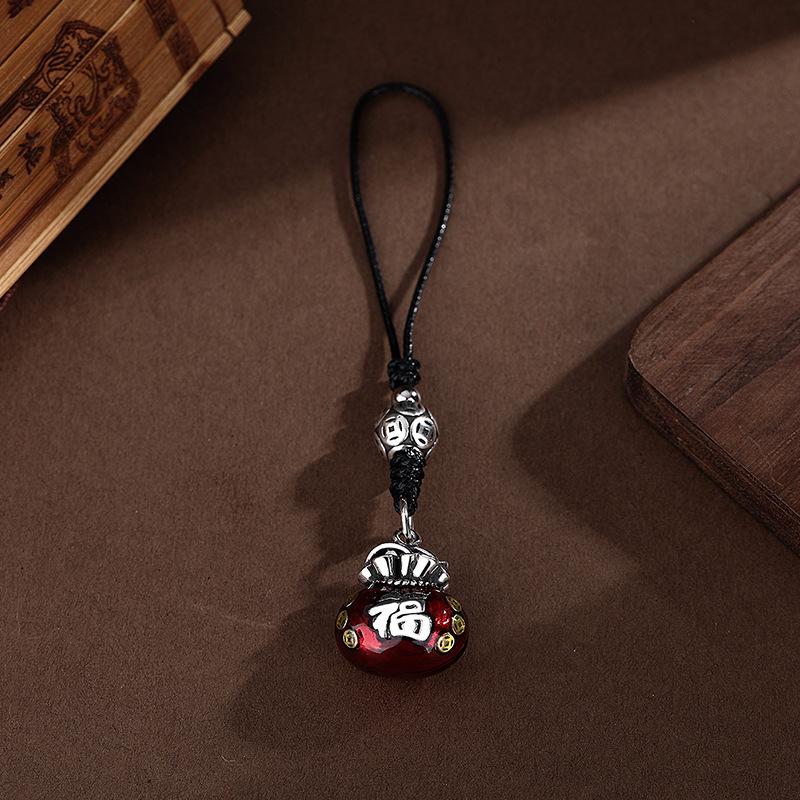 Colgante de Bolsa de Dinero de la Fortuna de Esmalte Plateado para Hombres y Mujeres, Colgante para Teléfono Móvil de Estilo Étnico Retro, Pequeño y Exquisito Fabricante