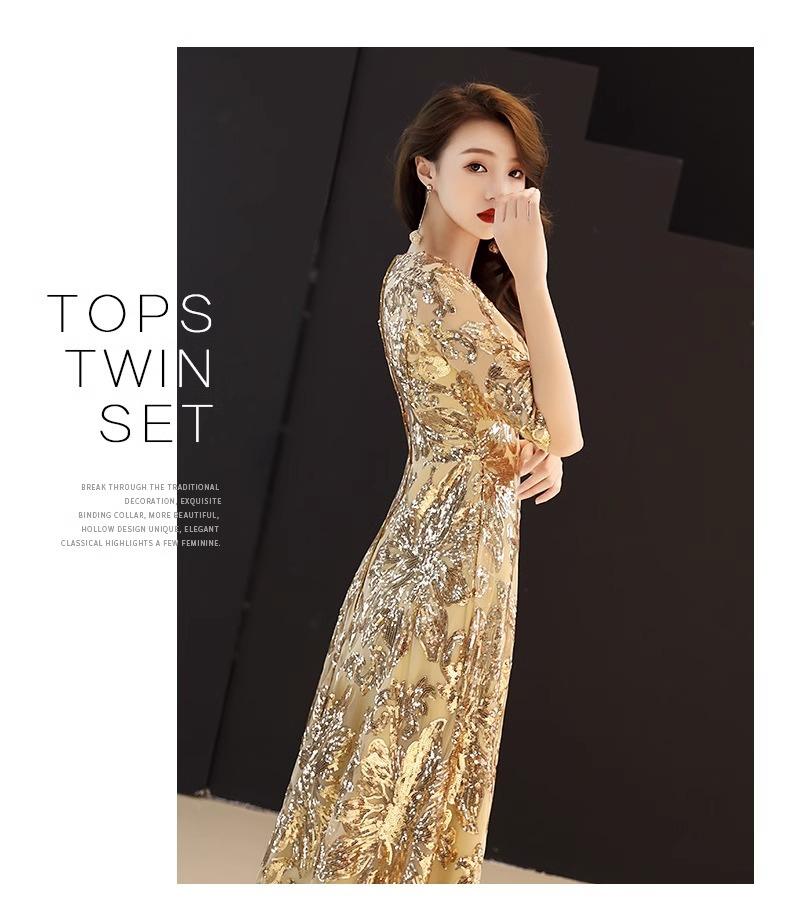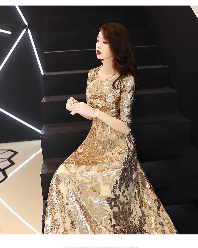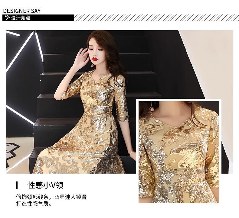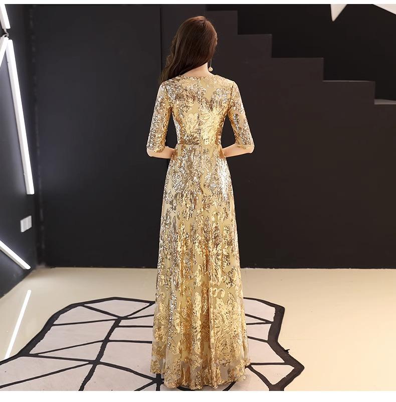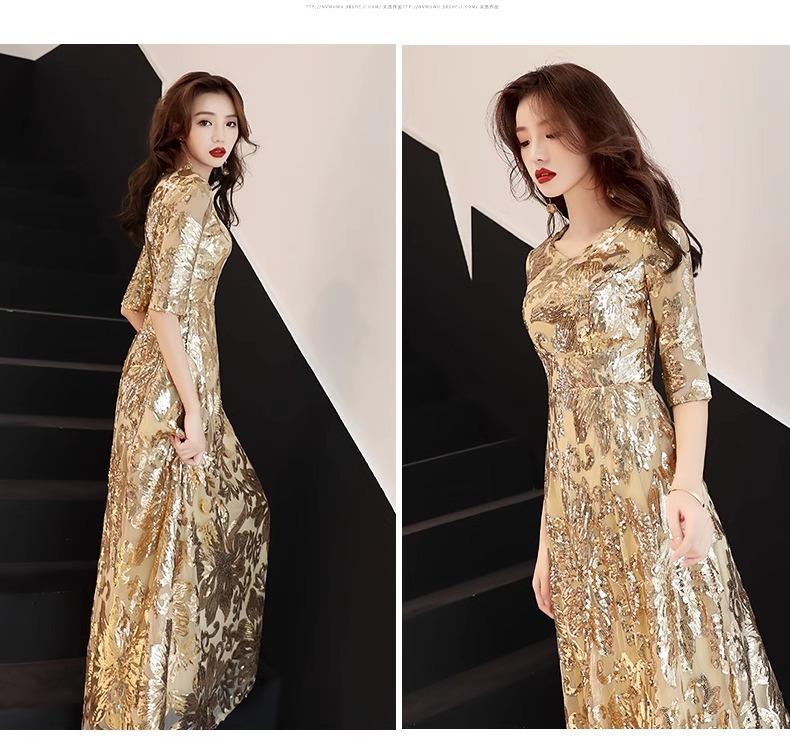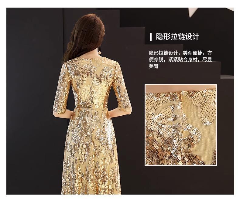 Compra Vestido de Noche de Banquete Largo 2025 Nuevo Primavera Dorado Moda Vestido Elegante Vestido Vestido de Actuación Vestido de Mujer al por mayor en Joom.pro