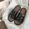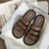 Sandalias Romanas de Mujer 2025 Verano Nuevo Cruz Punta Abierta Plano Hebilla Fondo Suave Casual Vacaciones Playa Pantuflas