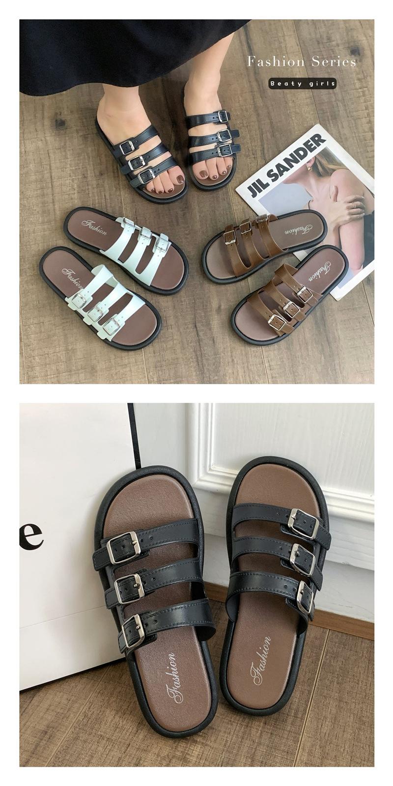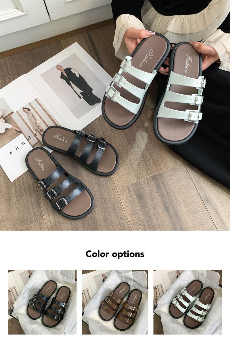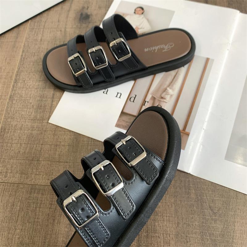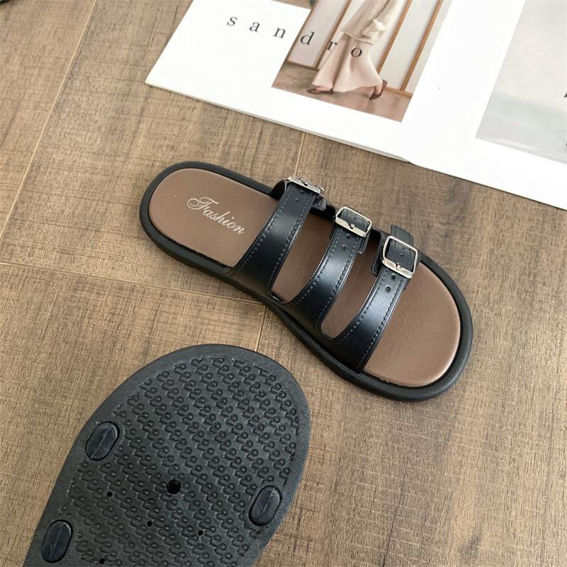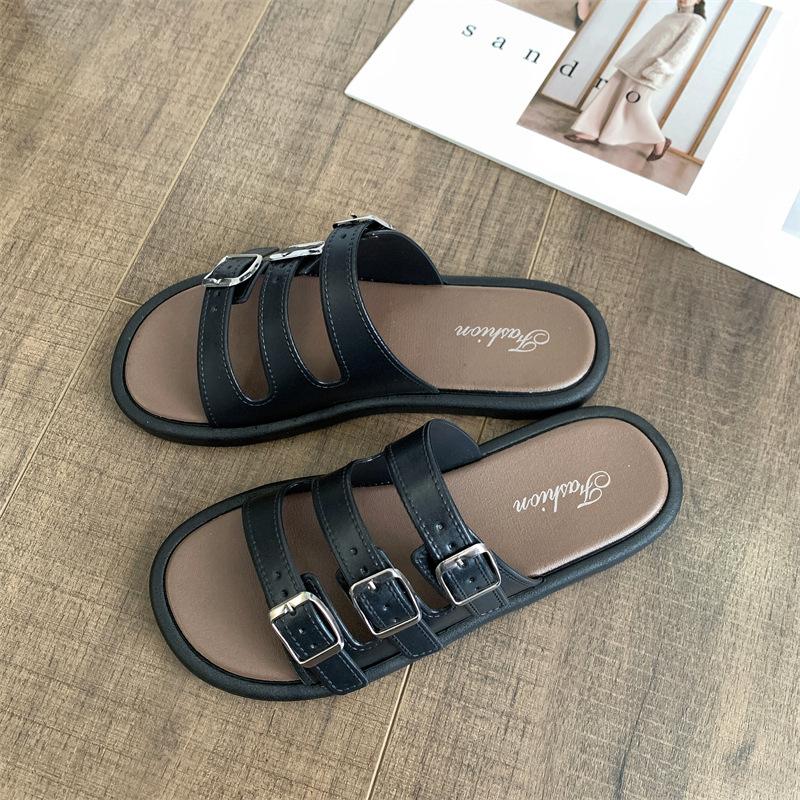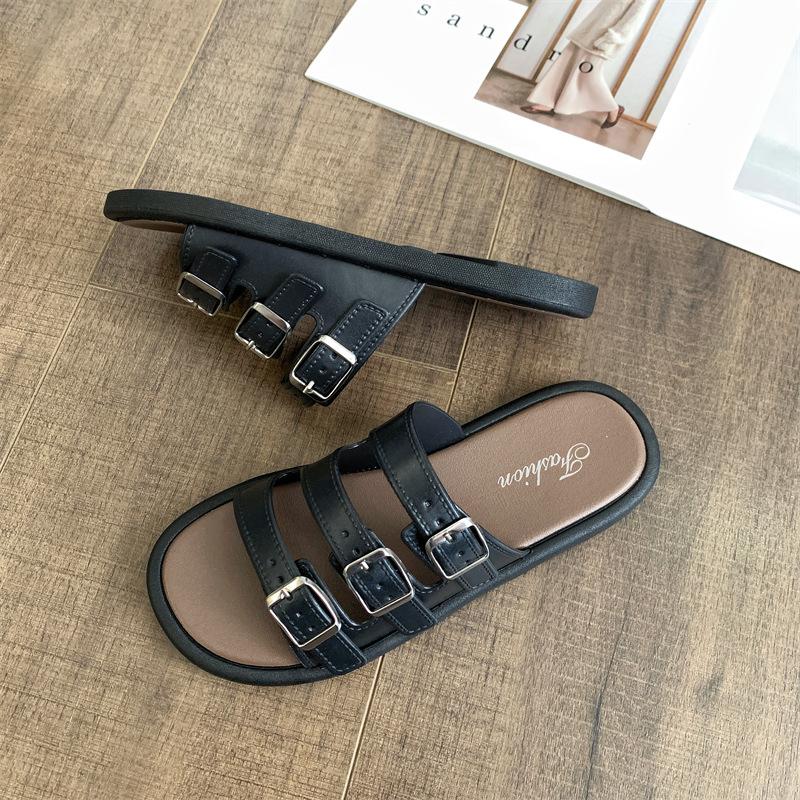 Compra Sandalias Romanas de Mujer 2025 Verano Nuevo Cruz Punta Abierta Plano Hebilla Fondo Suave Casual Vacaciones Playa Pantuflas al por mayor en Joom.pro
