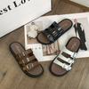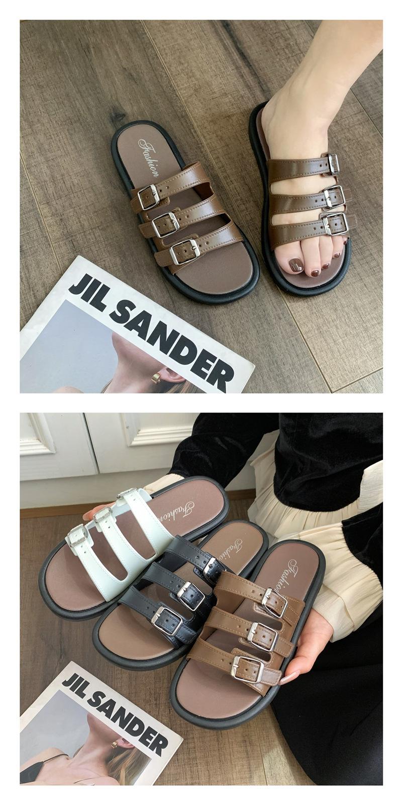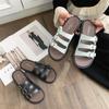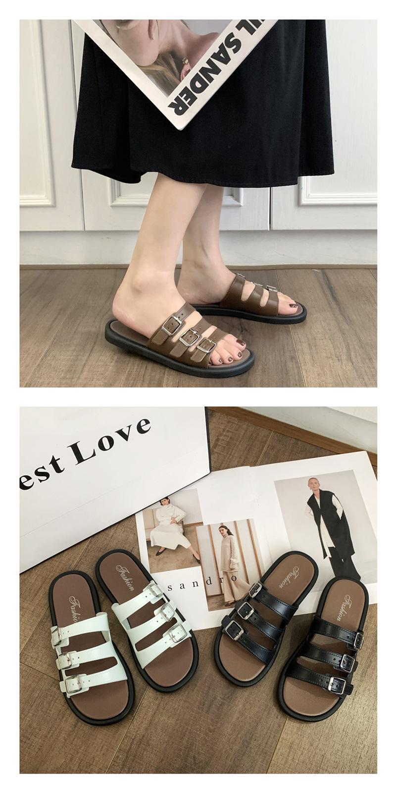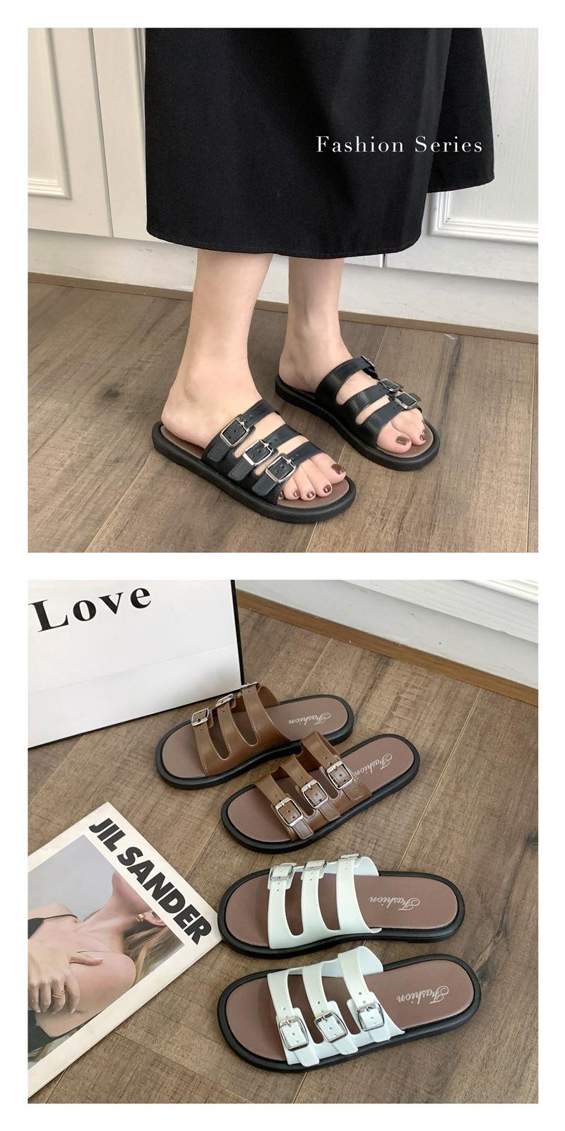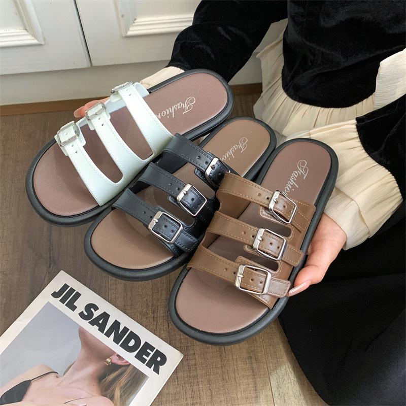 Compra Sandalias Romanas de Mujer 2025 Verano Nuevo Cruz Punta Abierta Plano Hebilla Fondo Suave Casual Vacaciones Playa Pantuflas al por mayor en Joom.pro