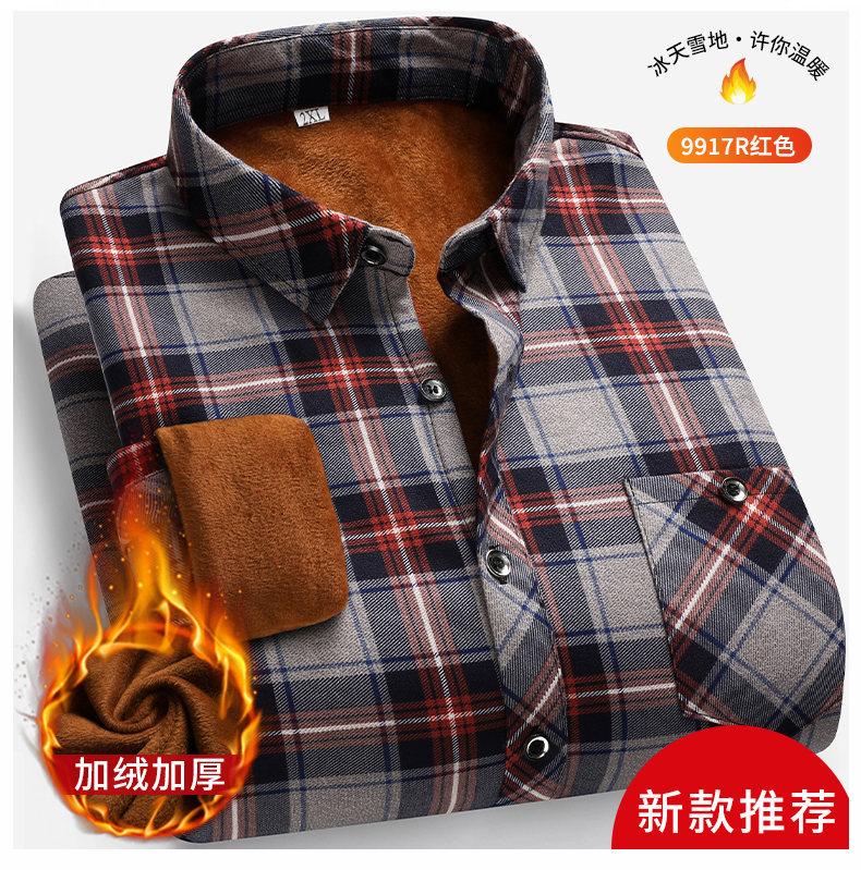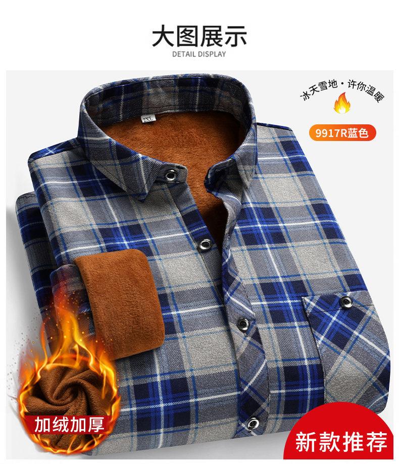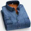 Camisa de Cuadros Gruesa Cálida de Invierno para Hombre 2025 con Forro Polar, Cuello Cuadrado, Manga Larga, para Papá de Mediana Edad, Negocios Casual
