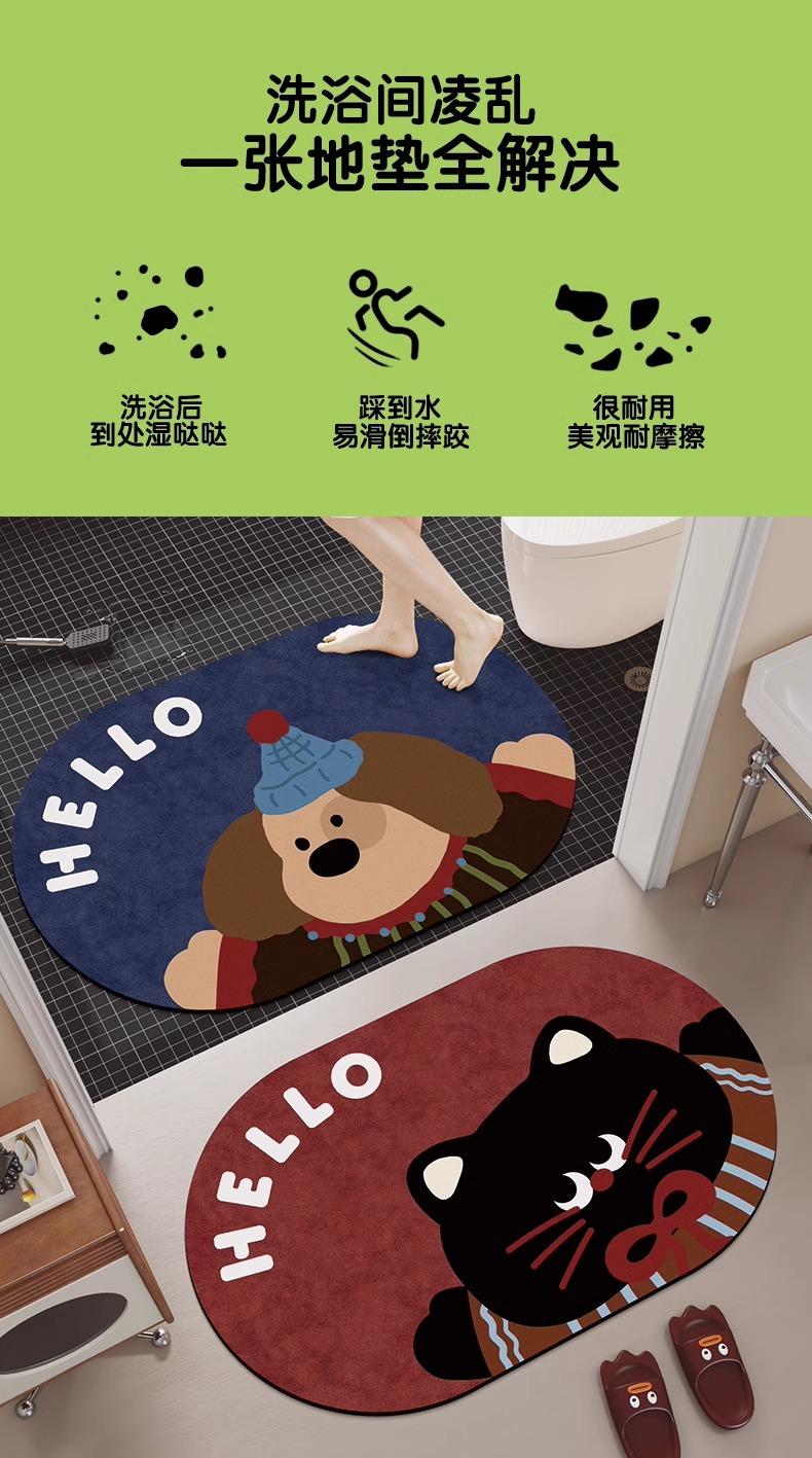 Alfombra de Piso Absorbente para Baño Tierra de Diatomeas Dibujos Animados Almohadilla para Pies de Baño para el Hogar Inodoro Baño Entrada Puerta Alfombra Antideslizante