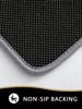 El material es superficie de tejido Jacquard de poliéster, el grosor es de aproximadamente 7 mm, el respaldo es antideslizante con puntos.. El estilo del patrón es color liso. Traje para cocina, cuarto de ducha y felpudo. Característica es fácil limpieza, plegado y respaldo antideslizante.