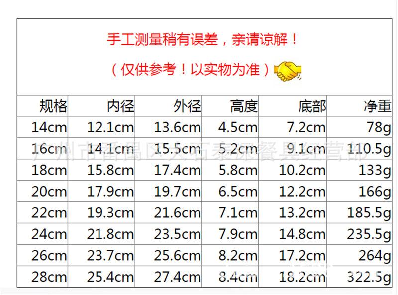 14CM-16CM-18CM-20CM-22CM-24CM-26CM. Por favor llámenos para precios específicos