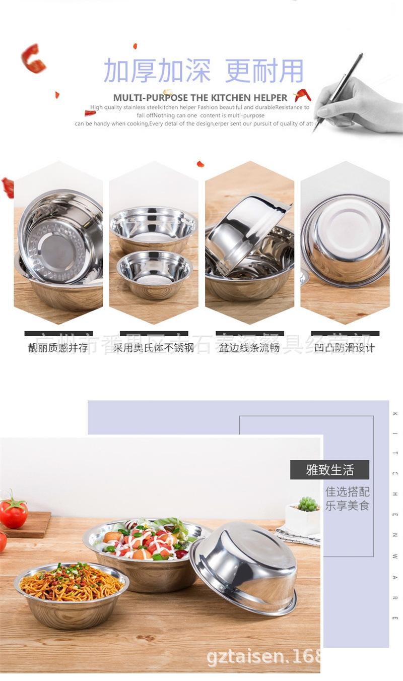 Los bordes estrechos se pueden usar para lavar verduras y mezclar verduras. Dependiendo del tamaño, se puede usar como tazón para sopa o tazón para arroz.