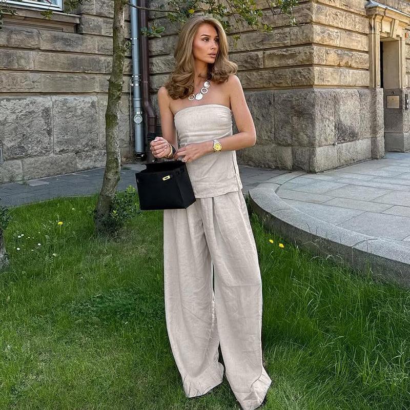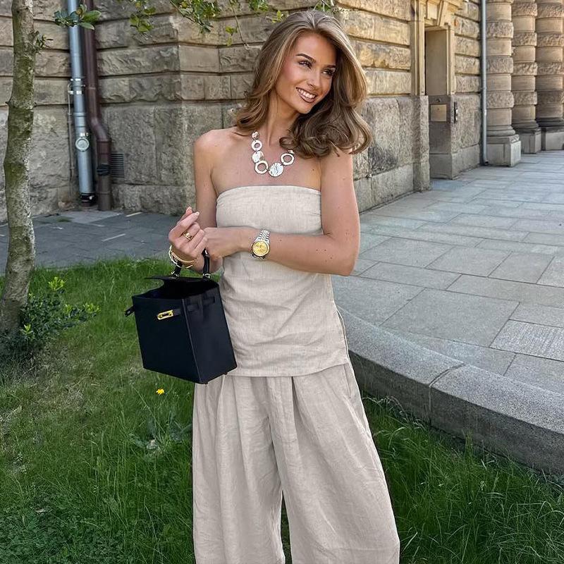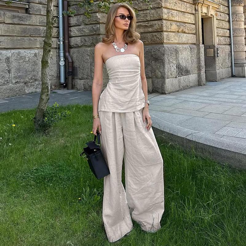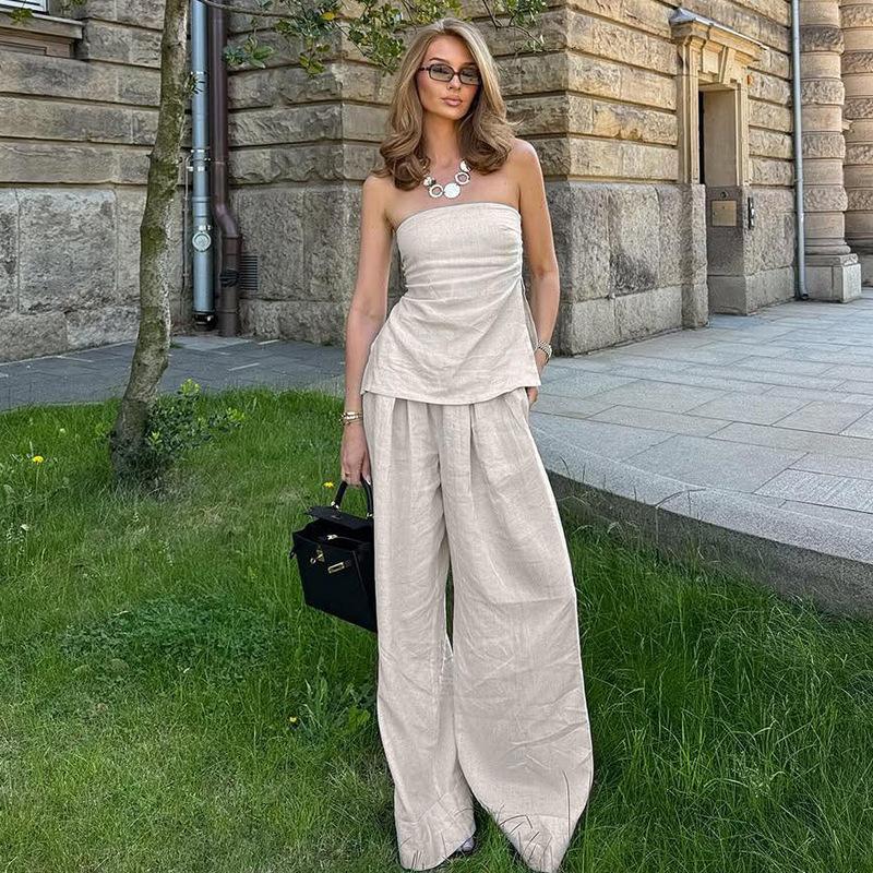Moda de Comercio Exterior Personalidad Sexy Top Descubierto Verano Europeo y Americano Nuevo Pantalones Casuales de Cintura Alta Conjunto Versátil de Moda