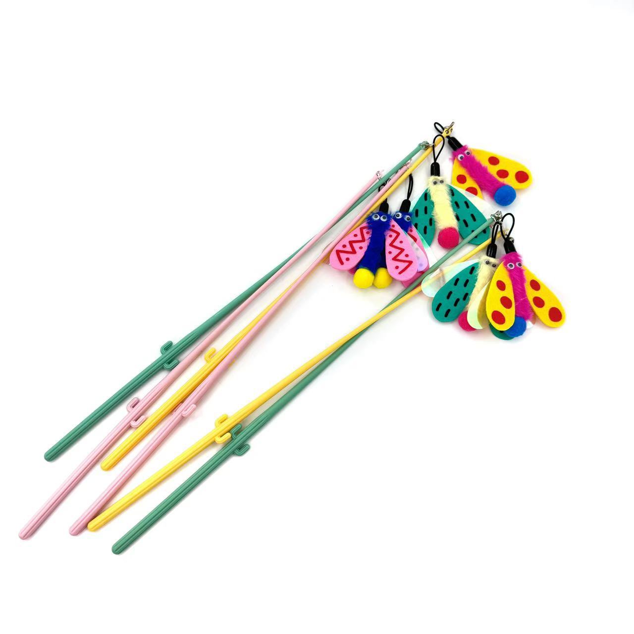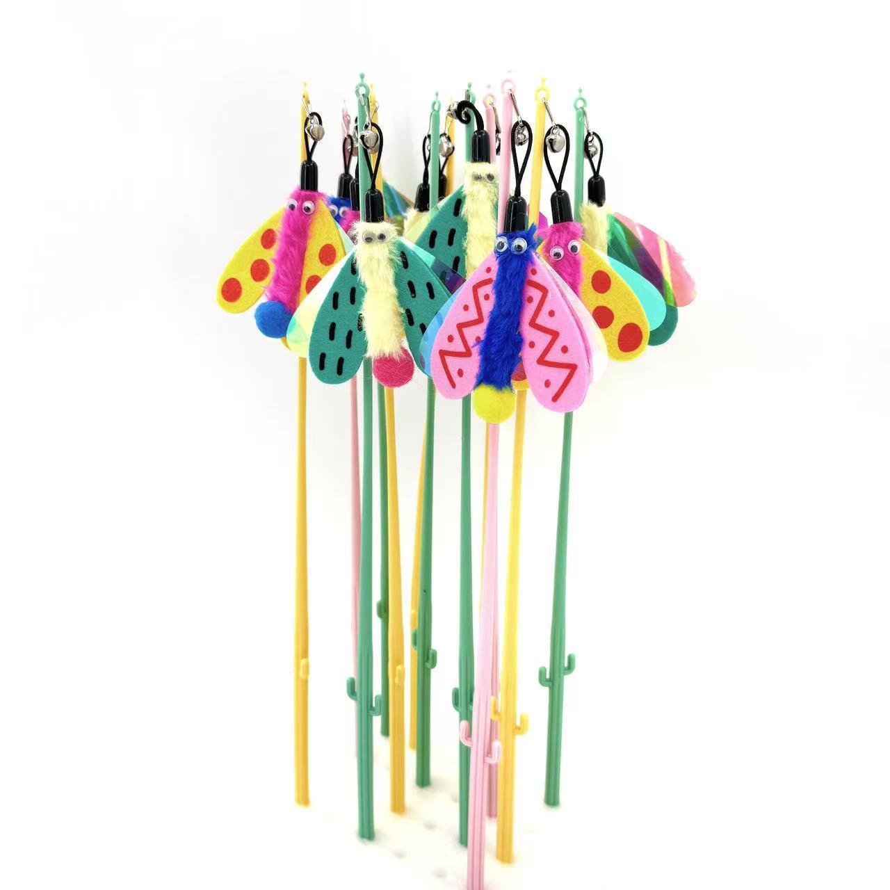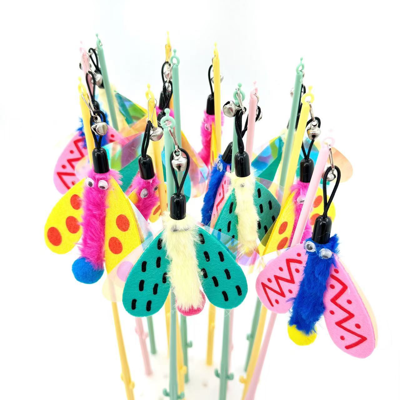 Fábrica en stock, venta al por mayor, campana de mariquita de color, palo para gato, juguete para gato, suministros interactivos para mascotas