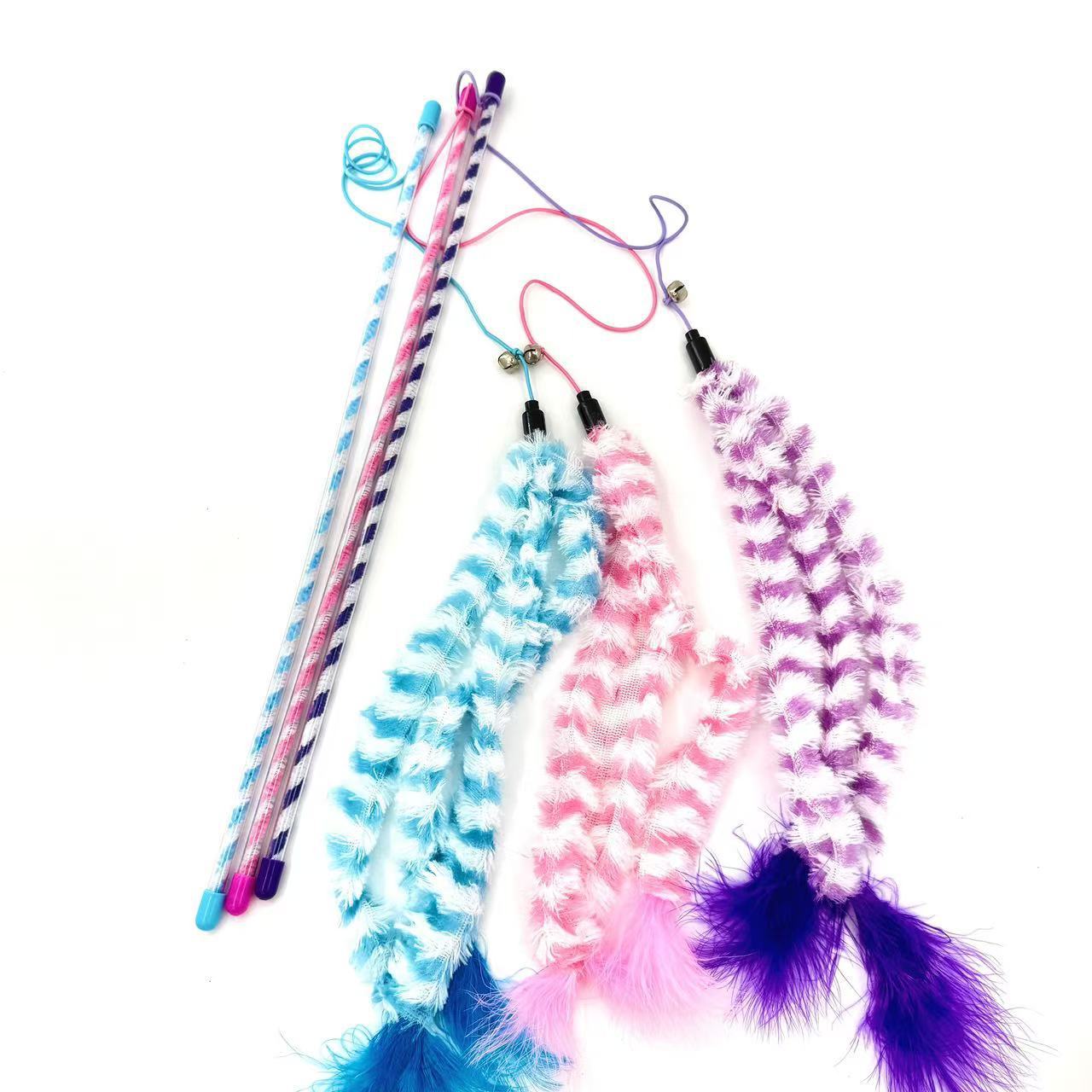 Fábrica en stock venta al por mayor color lana campana gato palo juguete para gato gato gato interactivo suministros para mascotas