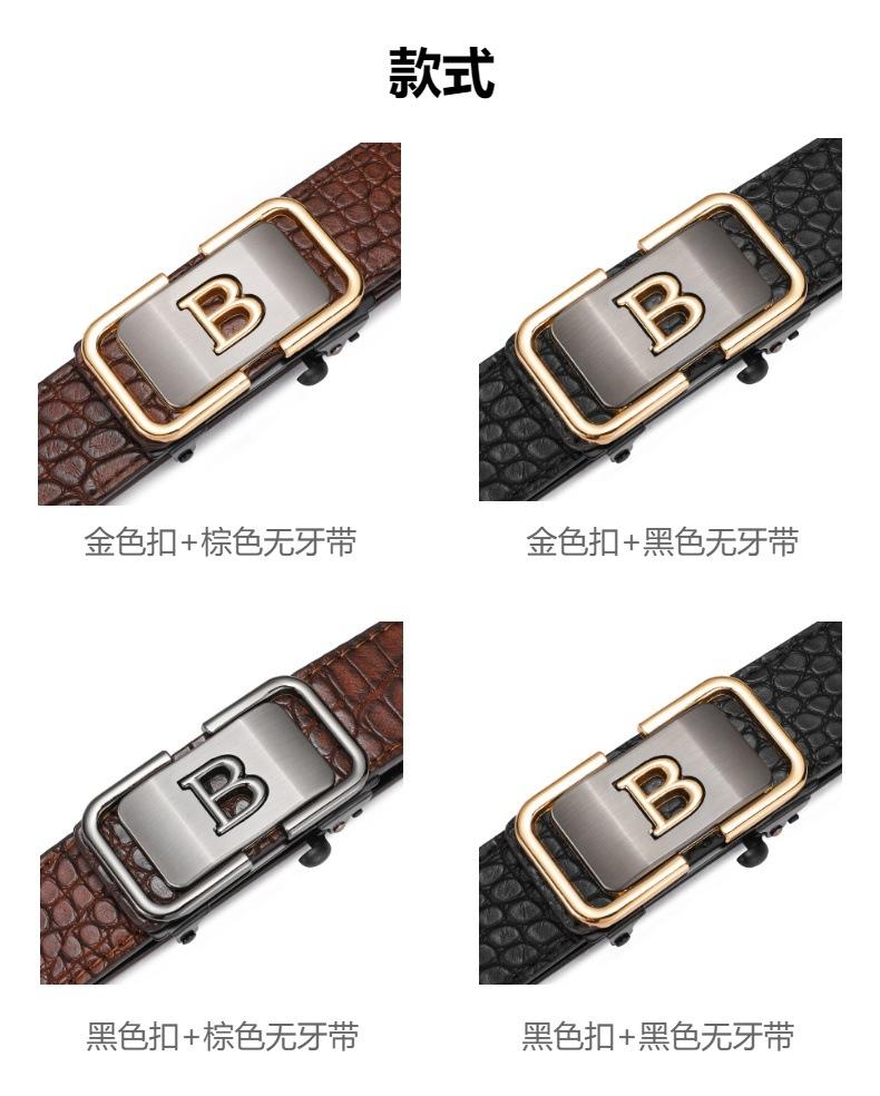 Gold buckle + black toothless belt, Gold buckle + brown toothless belt, Black buckle + black toothless belt, B...