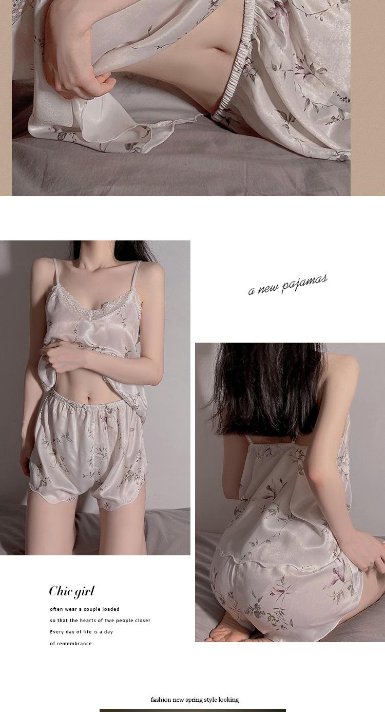 Compra Verano Nuevo Sexy Tentación Sling Shorts Encaje Pijama Ropa de Casa Tipo Seda Traje de Dos Piezas Venta al por Mayor Transfronteriza al por mayor en Joom.pro