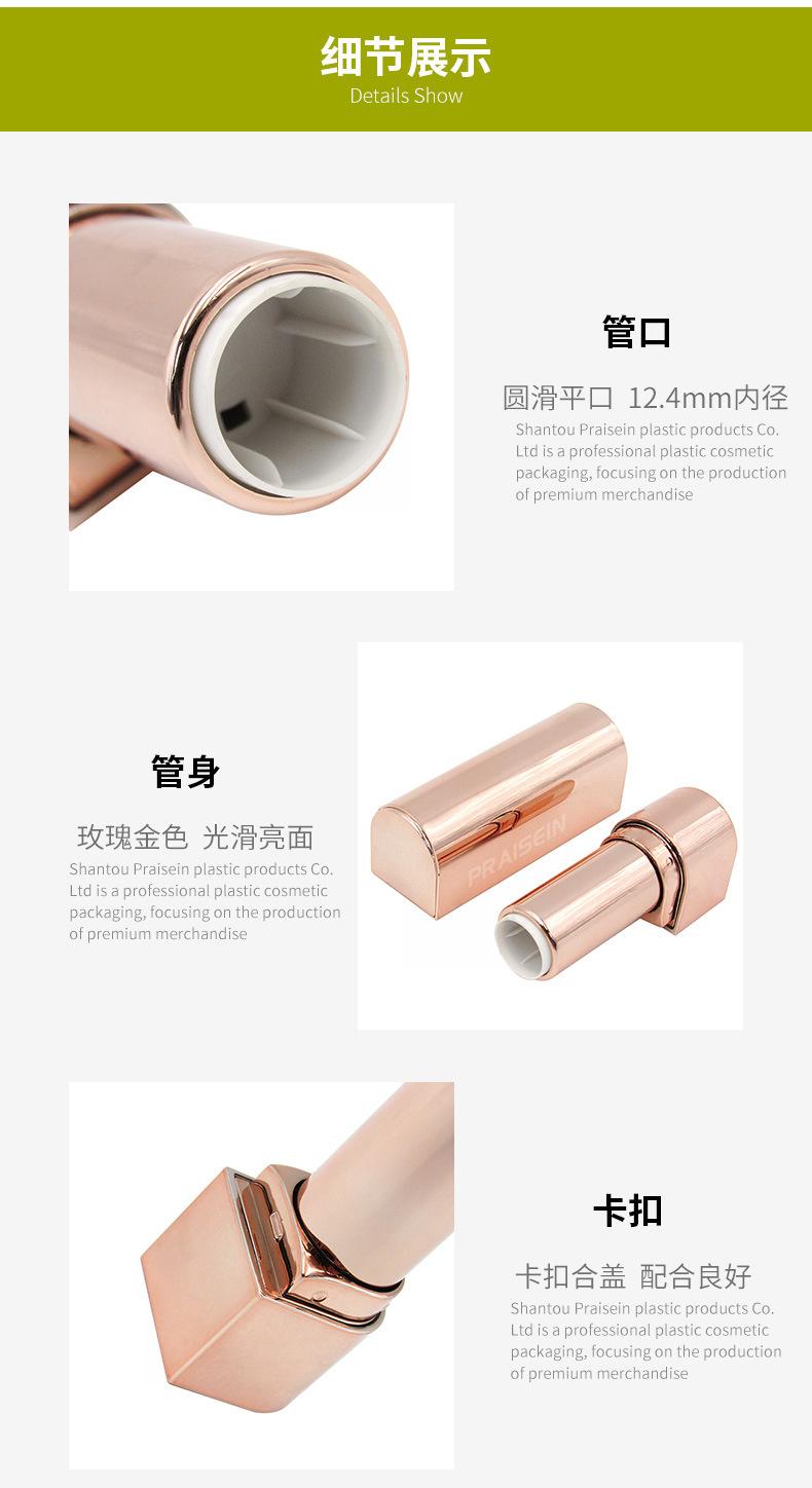 Suministro directo de fábrica de tubo de lápiz labial de oro rosa, tubo vacío, hebilla, tubo de lápiz labial de plástico, tubo de lápiz labial, material de embalaje cosmético.