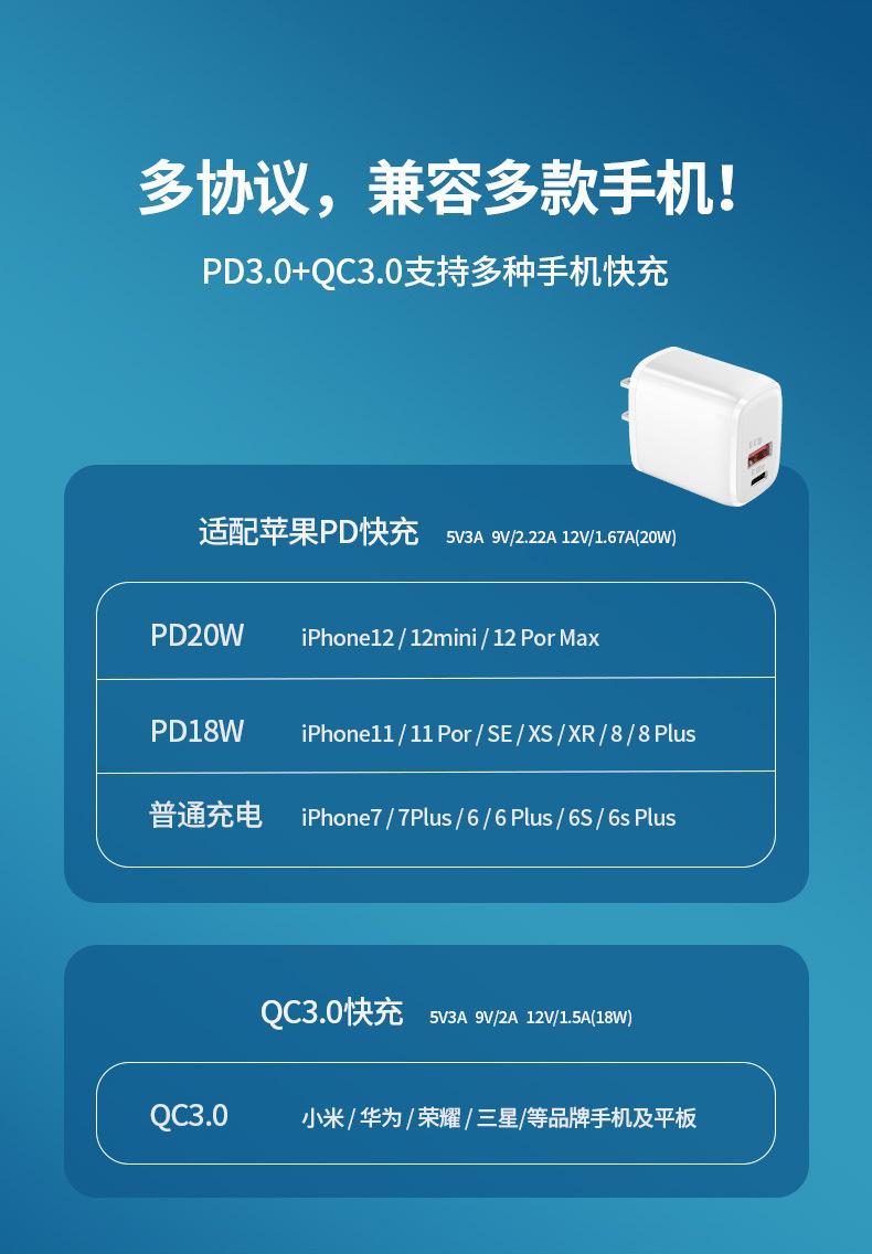 Compra Cargador de Carga Rápida Estándar US PD20W QC3.0 Adecuado para Carga Rápida de Apple 20W Cabezal de Carga Súper Rápida de Doble Puerto al por mayor en Joom.pro