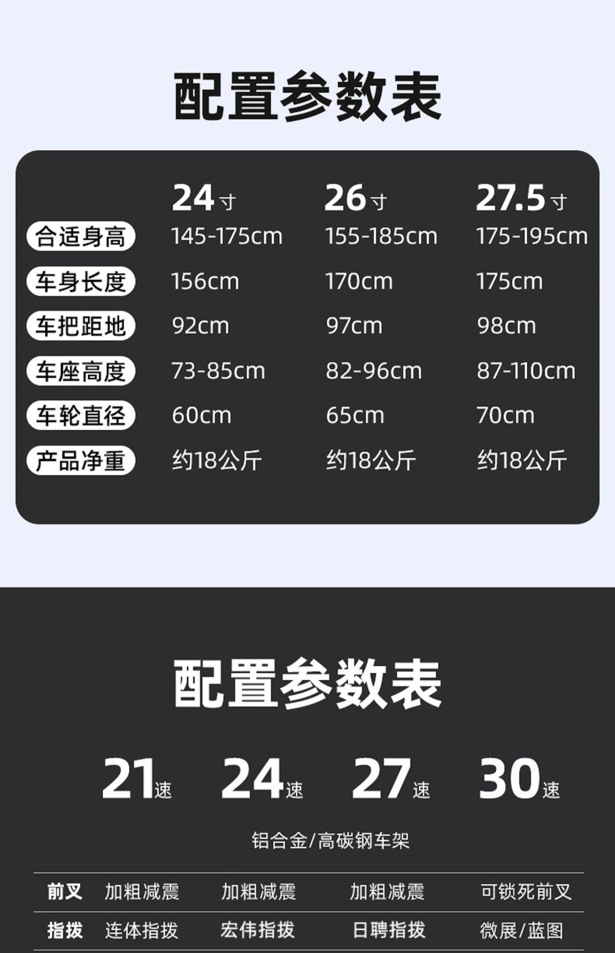 24inch +21 speed, 26inch +21 speed, 27.5inch +21 speed, 24inch +24 speed, 26inch +24 speed, 27.5inch +24 speed...