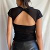 2025 Verano Mujer Sexy Espalda Descubierta Cuello en V Color Sólido Adelgazante Manga Corta Camiseta Top para Mujer