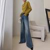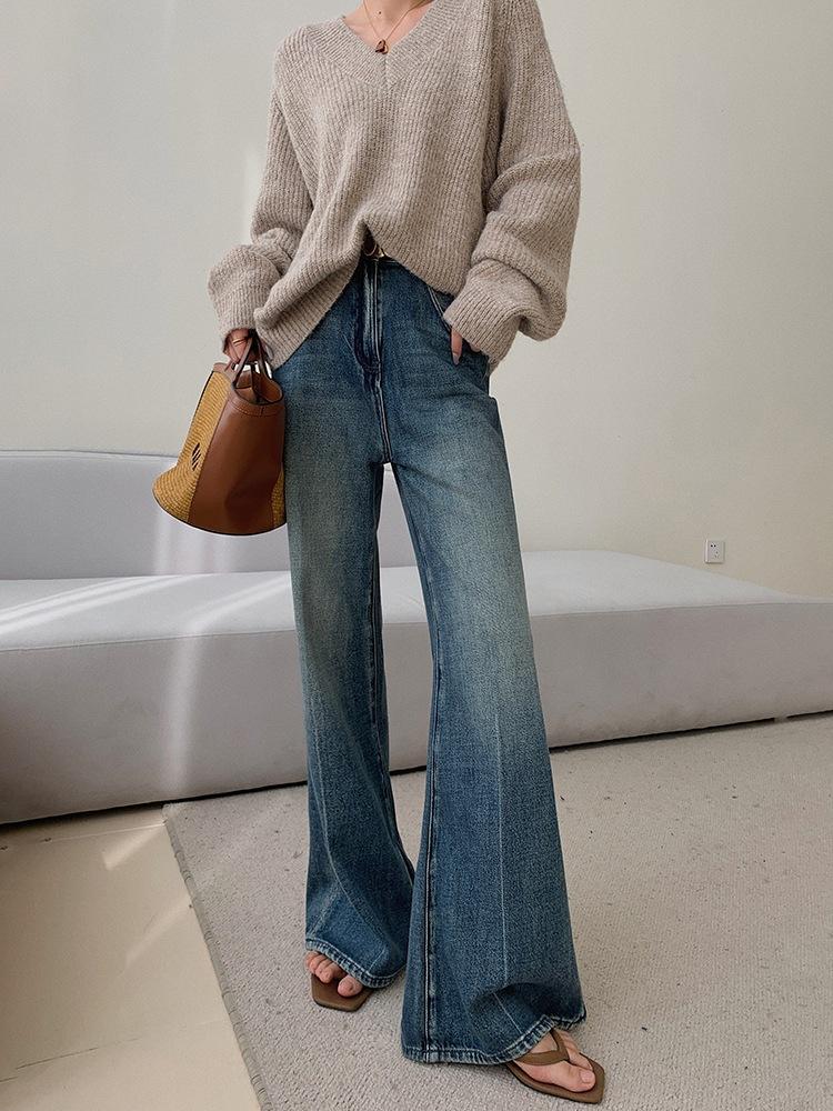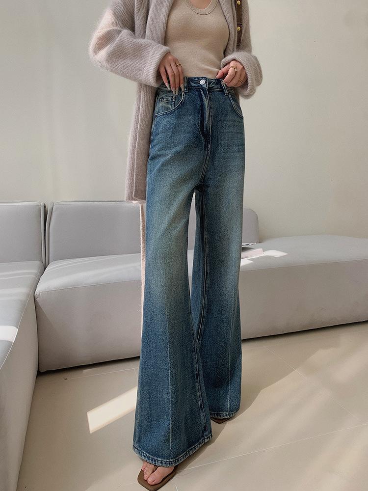 Compra Jeans Lavados Retro de Moda Ins para Mujer Otoño 2025 Nuevo Cintura Alta Slim Slim Acampanados Pantalones Herradura para Mujer al por mayor en Joom.pro