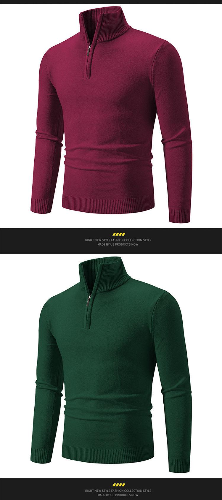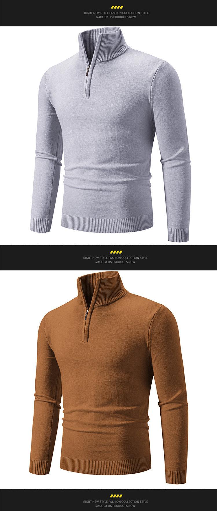 Suéter Pulóver de Cuello Medio Alto con Cremallera para Hombre Otoño/Invierno Talla Grande Manga Larga Tejido Camiseta Básica para Hombre