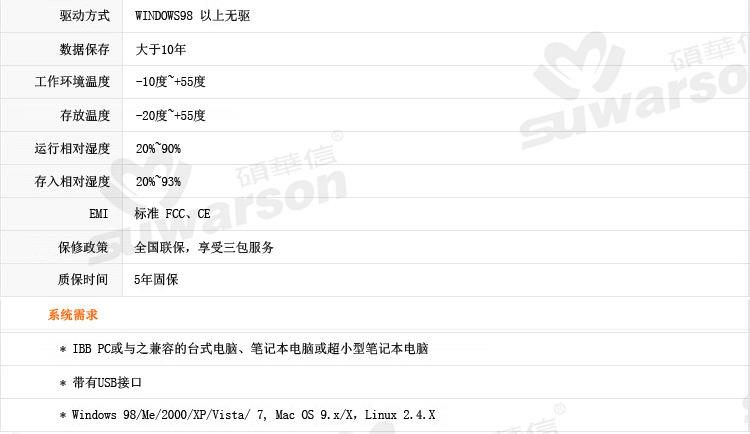 2. Adopta interfaz USB2.0, soporta conexión en caliente, plug and play, fácil de usar, buena fiabilidad, se puede borrar y escribir más de 1 millón de veces.