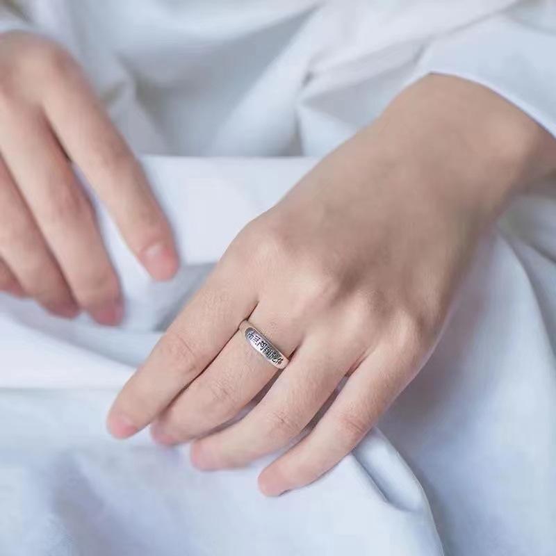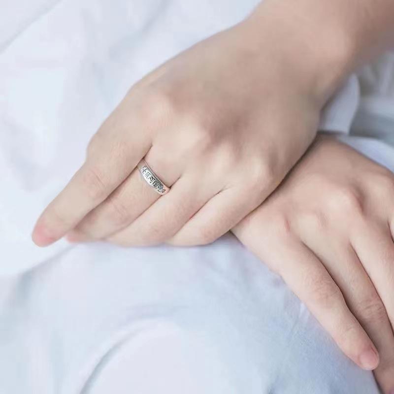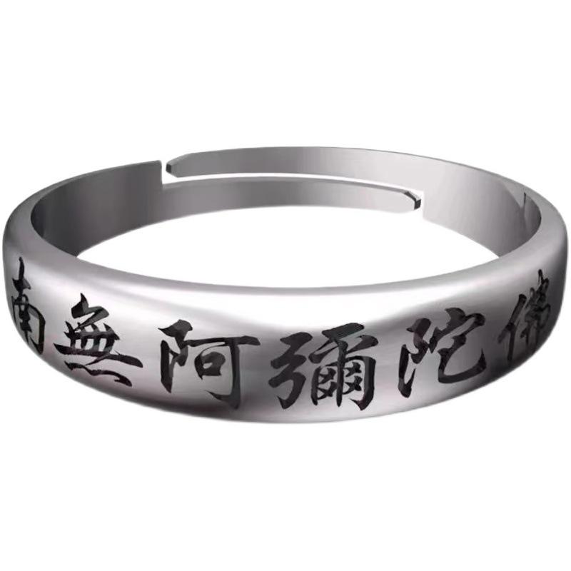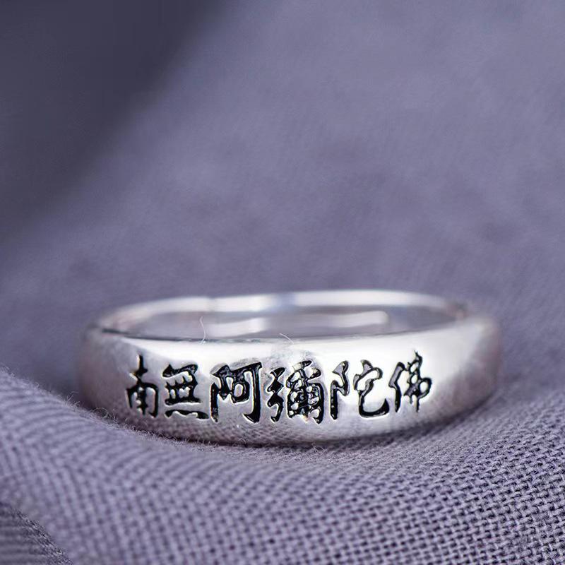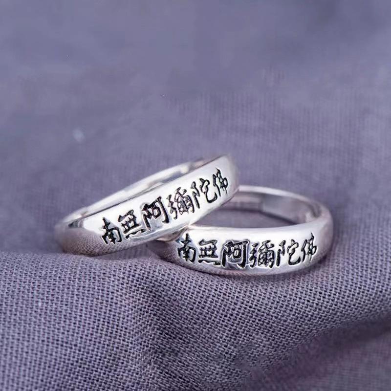 Anillo de Buda Amitabha Namo plateado Anillo ajustable para hombre y mujer Vintage Simple Anillos de pareja Directo de fábrica