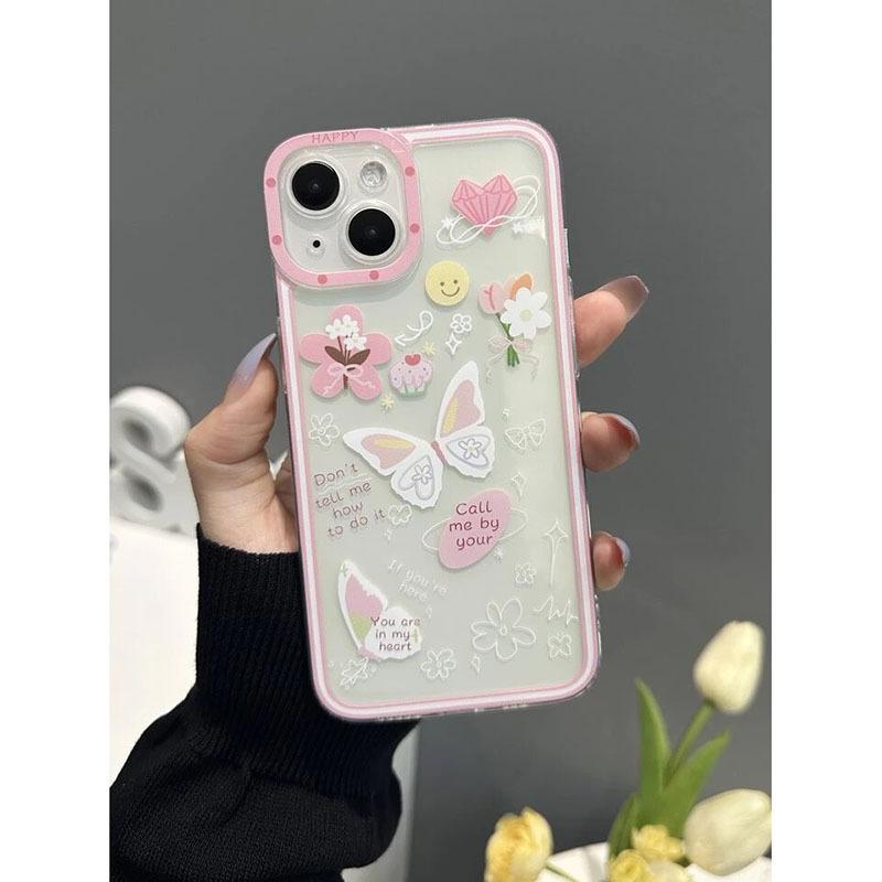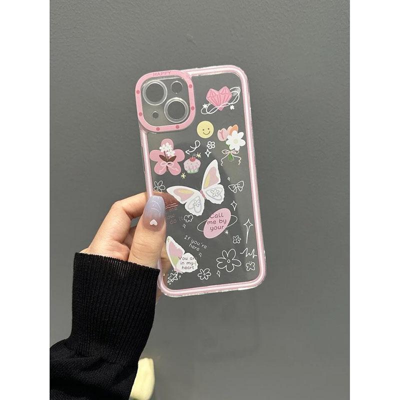 Nueva Funda para iPhone 15 de Mariposa Flor 14promax Apple 13 Transparente 12 Todo incluido 11 Funda de Silicona
