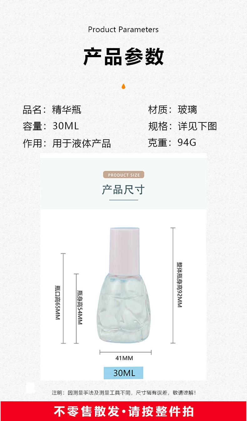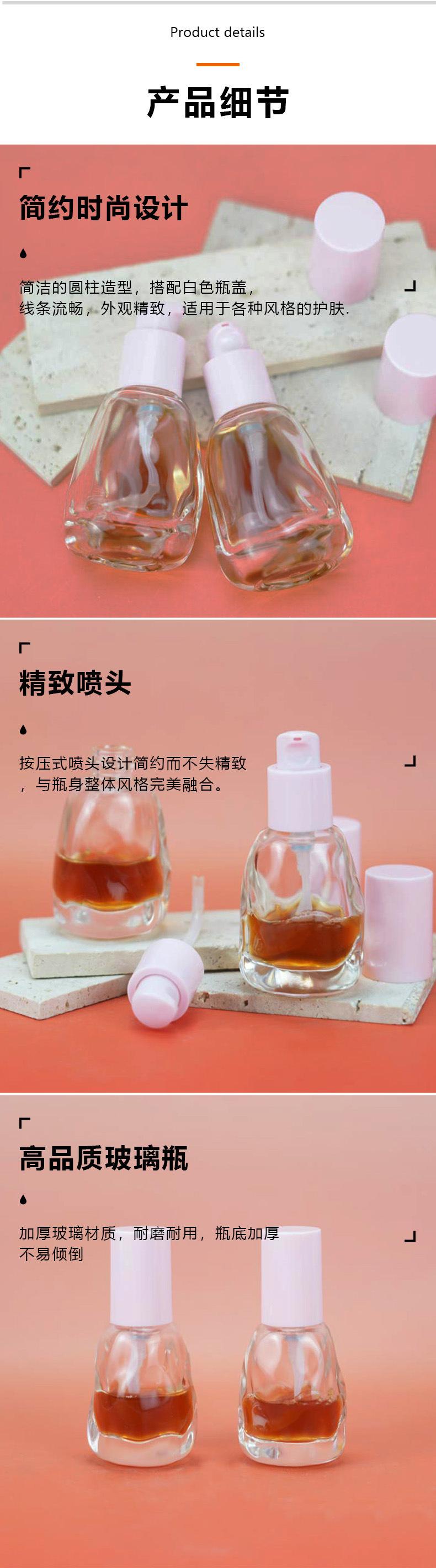 Frasco de vidrio para loción de 30 ml con bomba blanca para cosméticos, presiona, transparente, para base líquida, embalaje de viaje