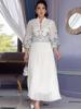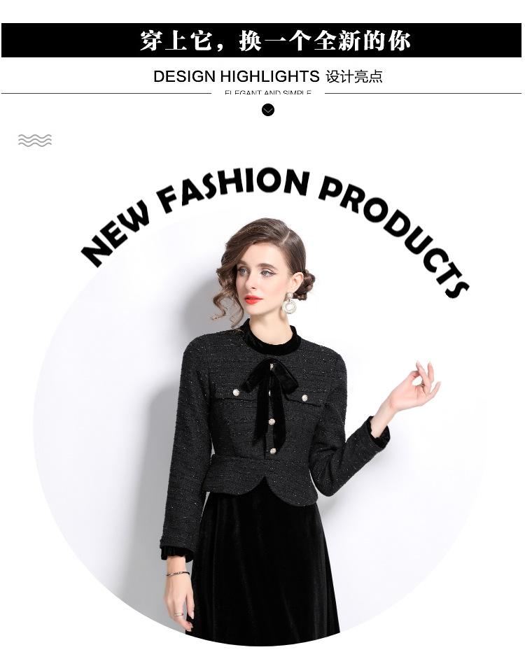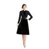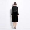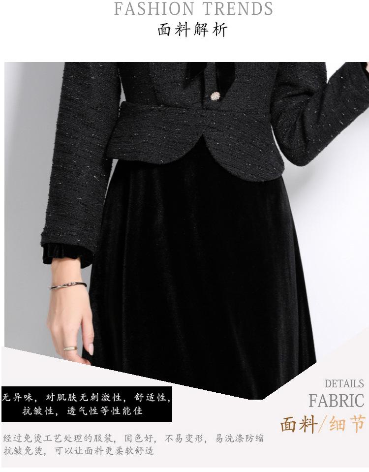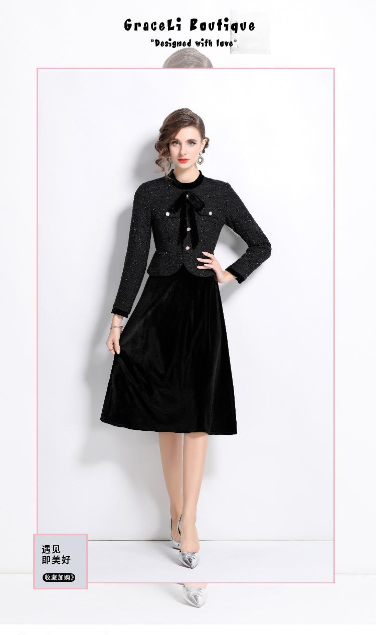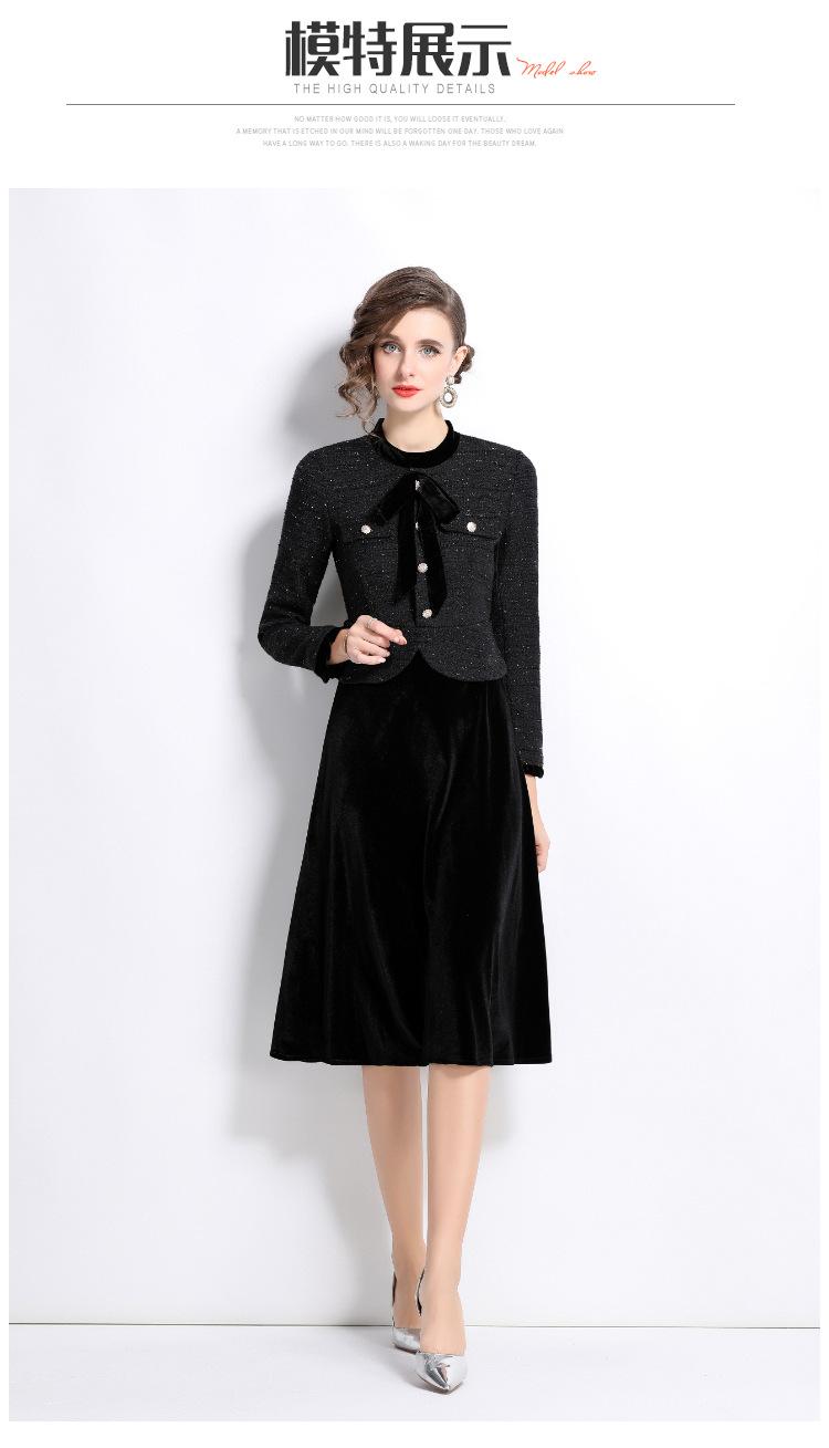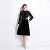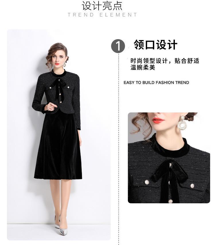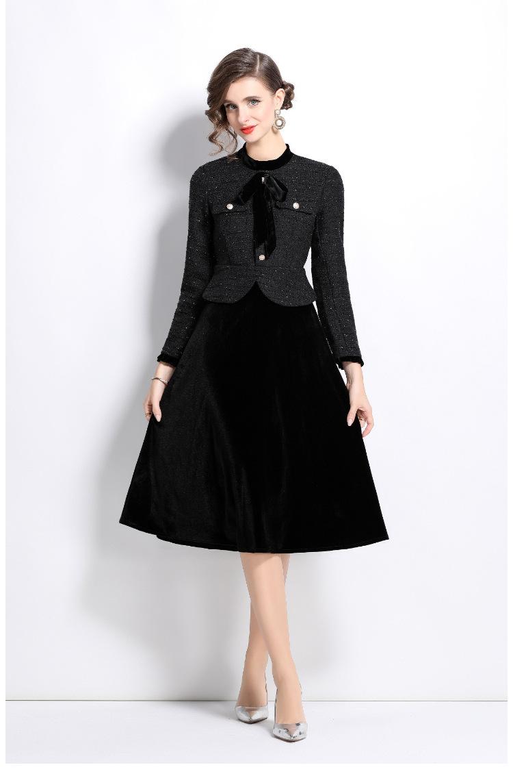 Amazon Estación Independiente Comercio Exterior 2024 Vestido de Manga Larga de Terciopelo Patchwork Tweed de Celebridad Falso de Dos Piezas