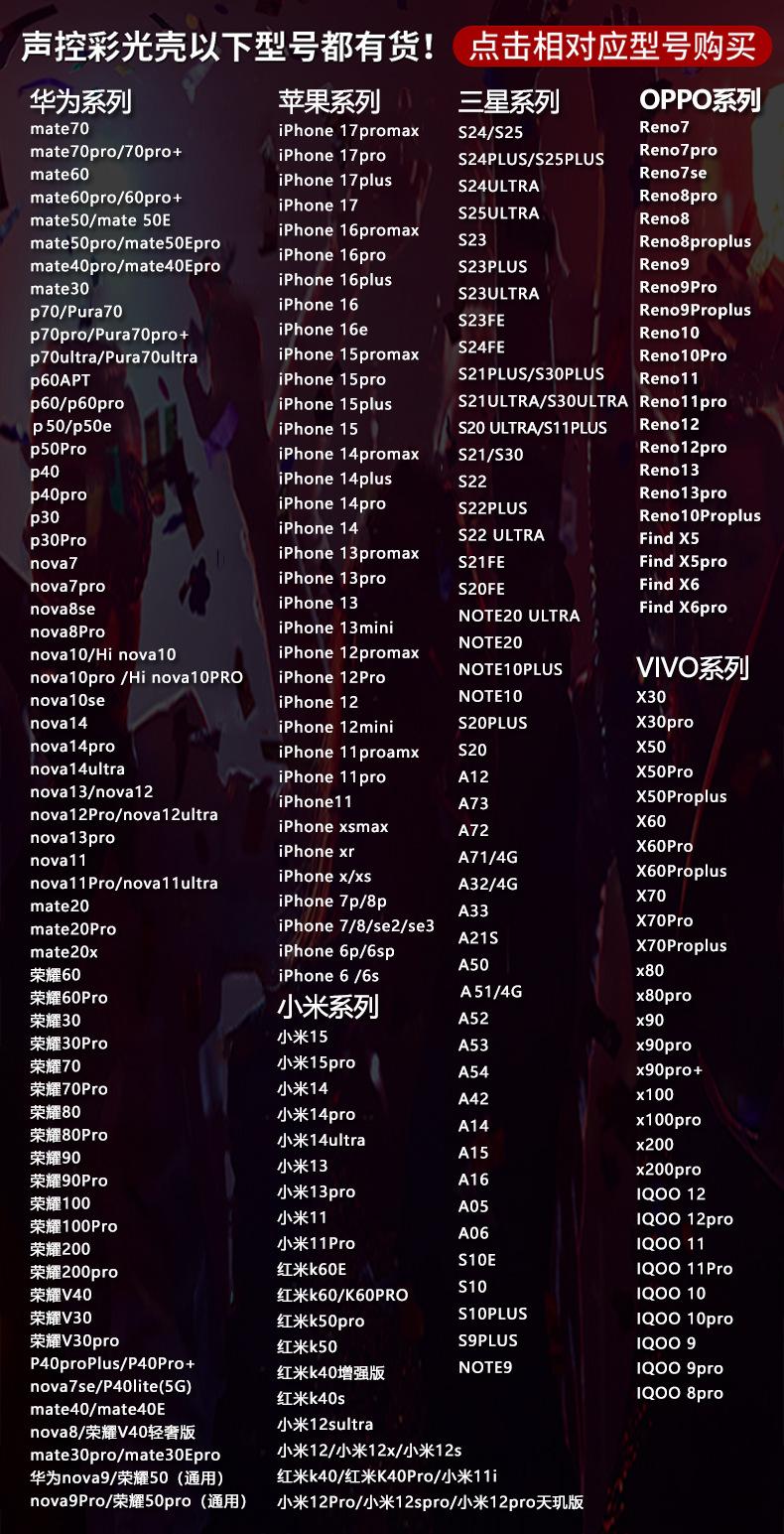 Fundas Luminosas para Teléfonos para Nuevos Modelos Apple 17Pro/Huawei/Xiaomi/Samsung/Vivo/Oppo