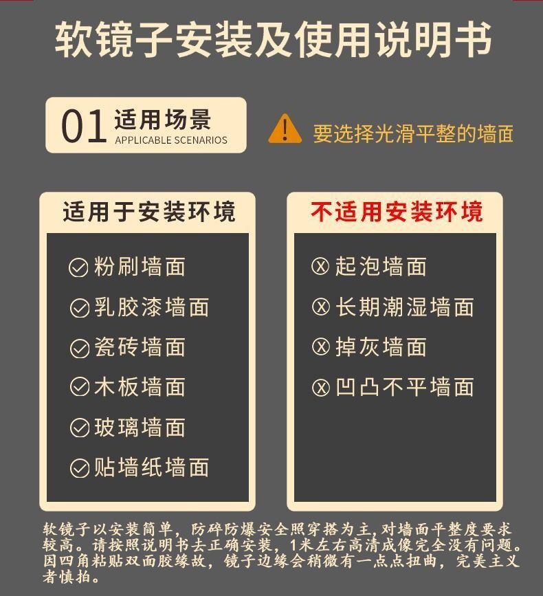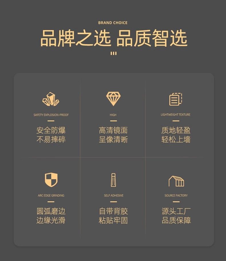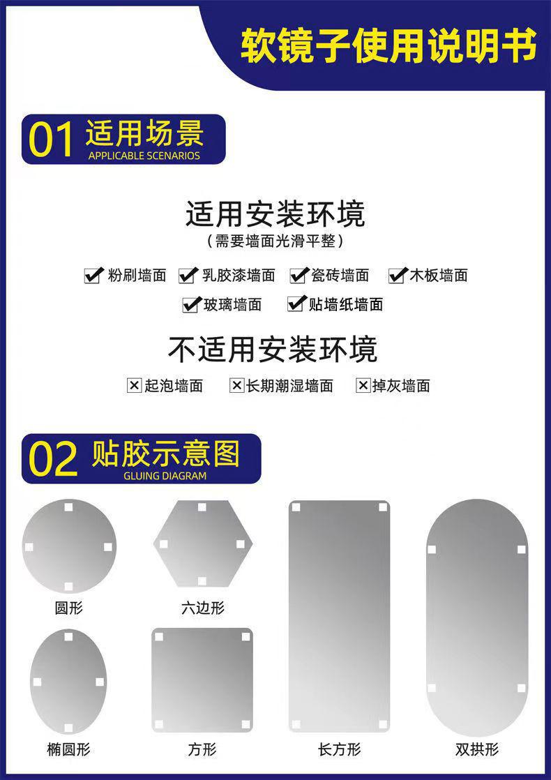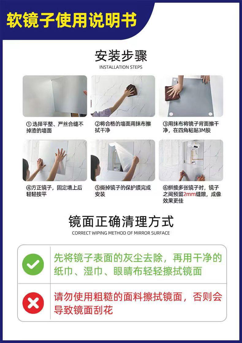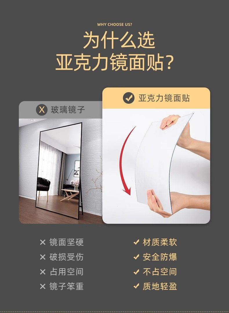 Espejo acrílico espejo suave espejo de baño autoadhesivo a prueba de explosiones varios tamaños y formas se pueden hacer ventas directas de fábrica