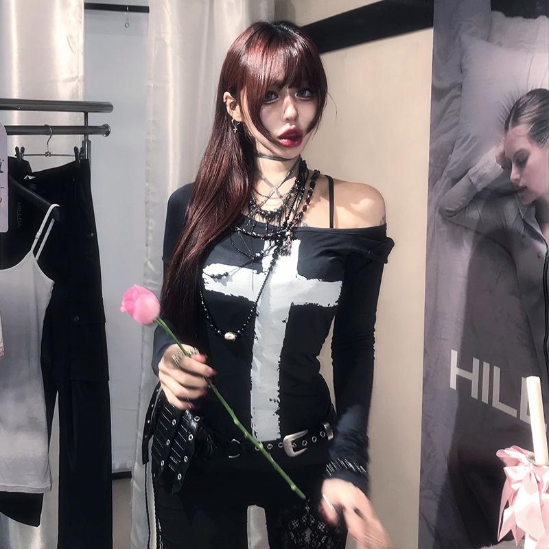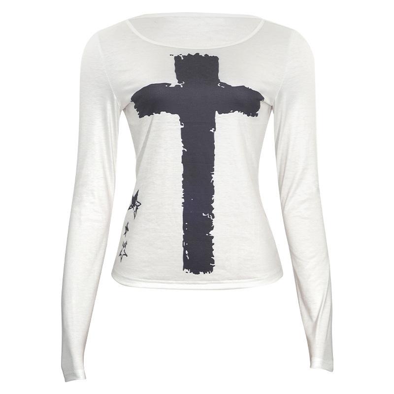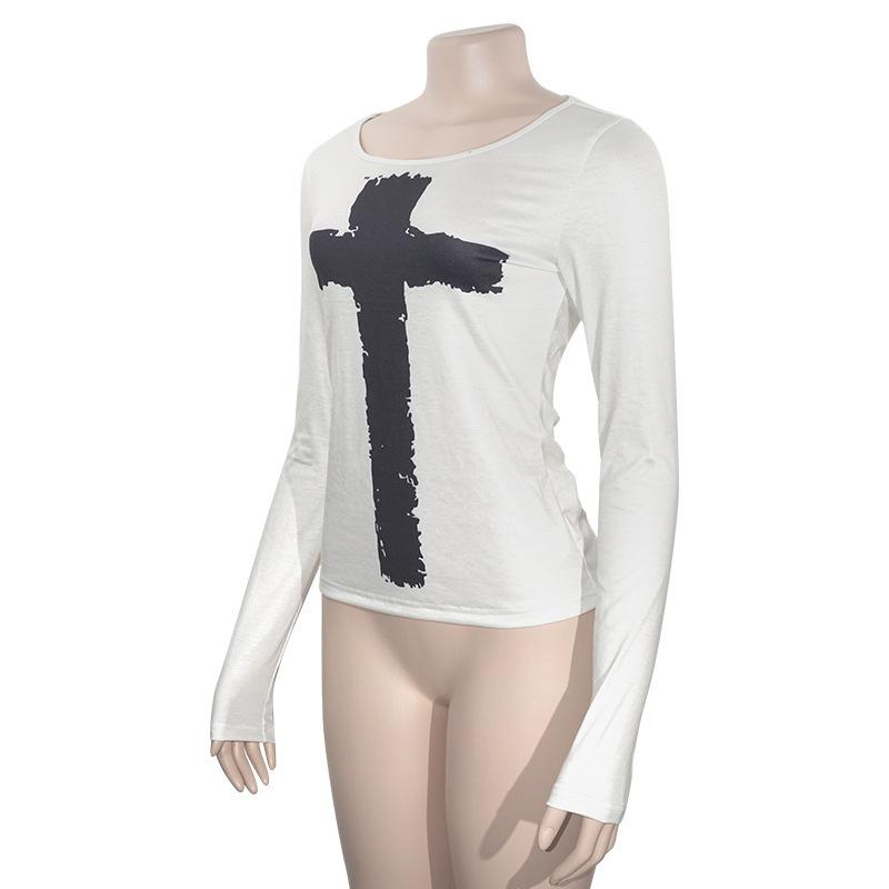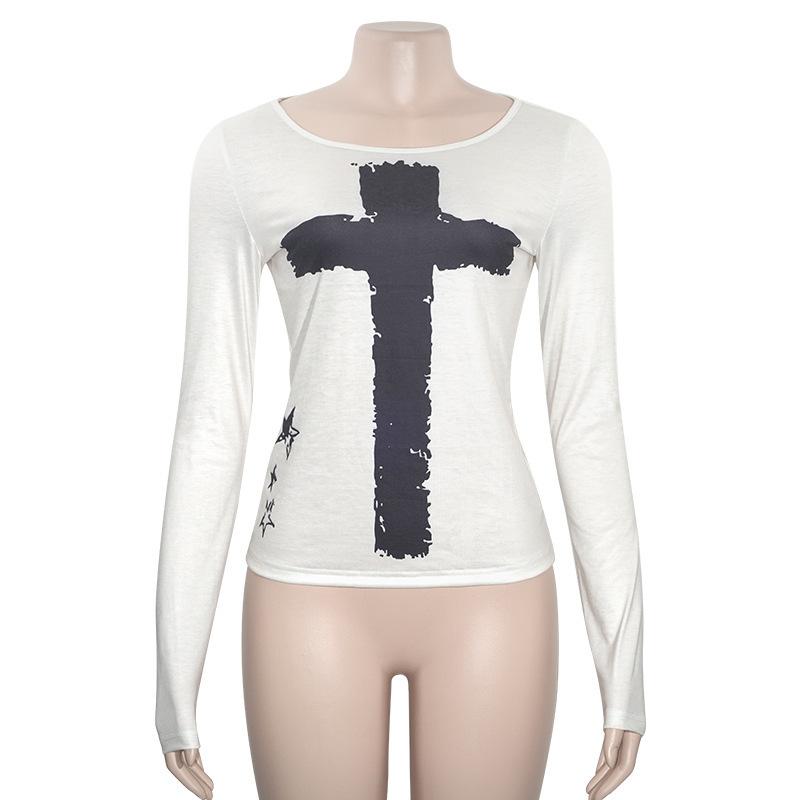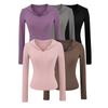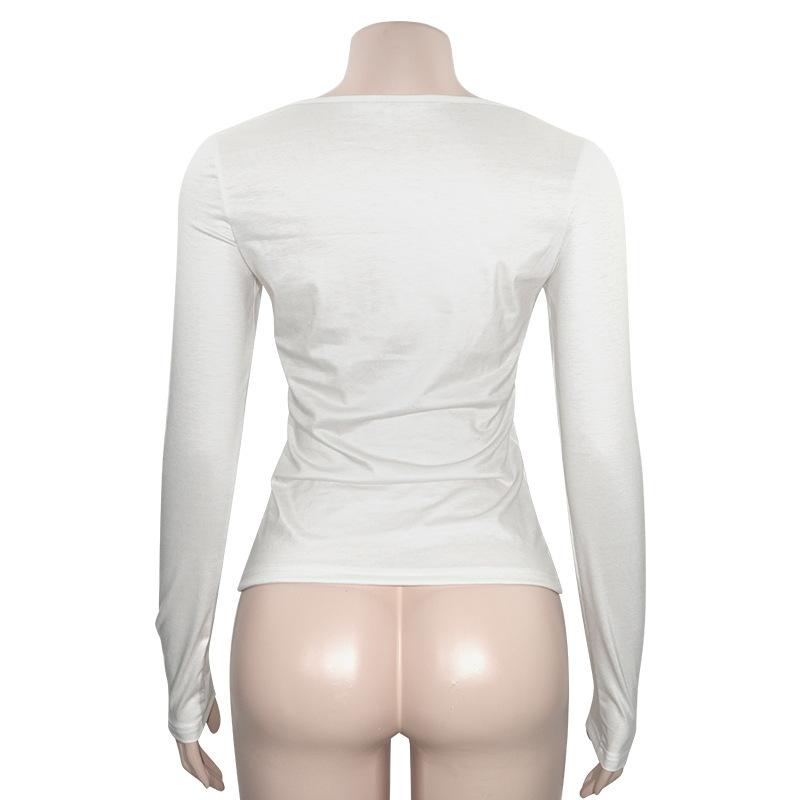 Verano Chica Americana Sexy 2025 Otoño Nuevo Color Sólido Cuello Redondo Manga Larga Estampado Ajustado Más Fácil de Combinar Camiseta Top de Mujer