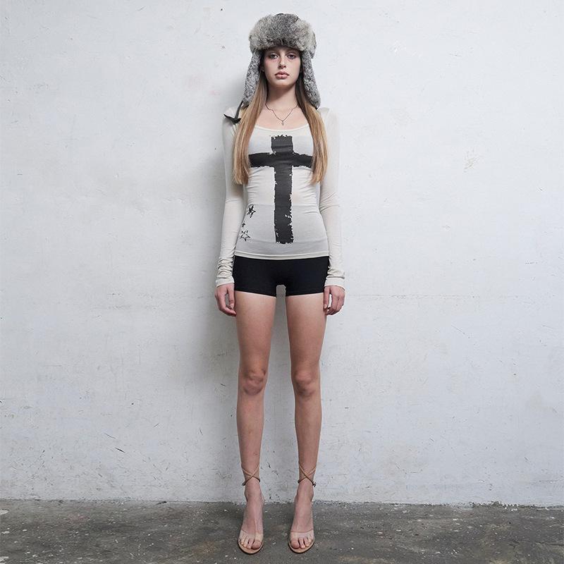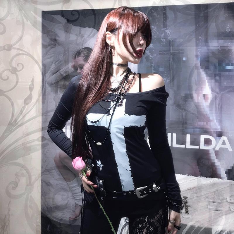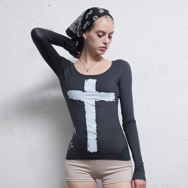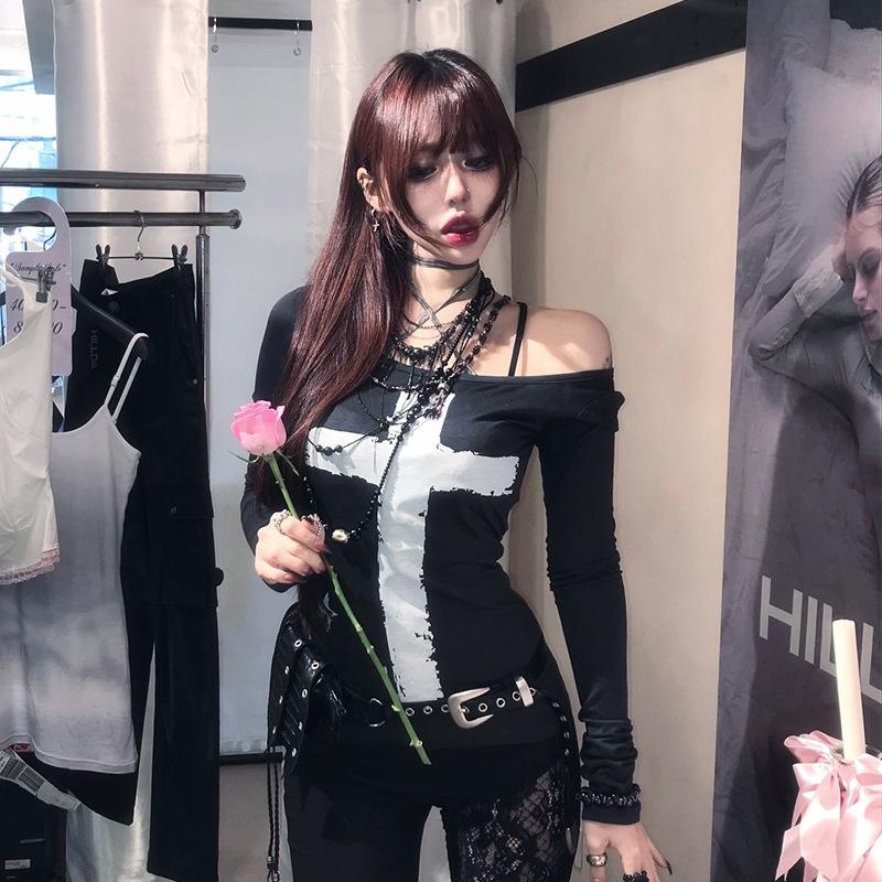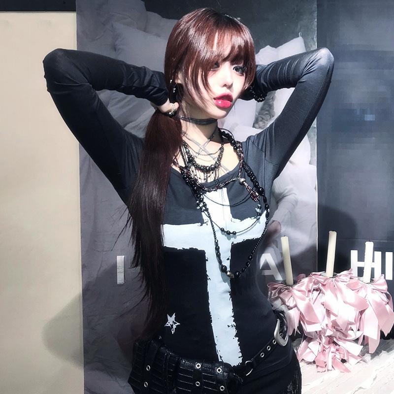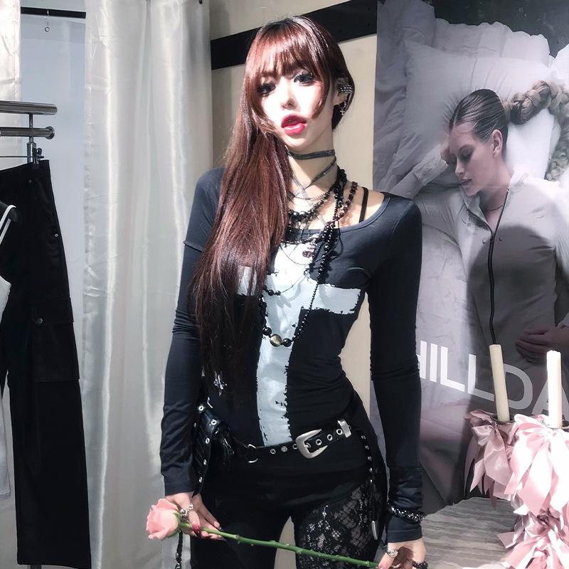 Verano Chica Americana Sexy 2025 Otoño Nuevo Color Sólido Cuello Redondo Manga Larga Estampado Ajustado Más Fácil de Combinar Camiseta Top de Mujer