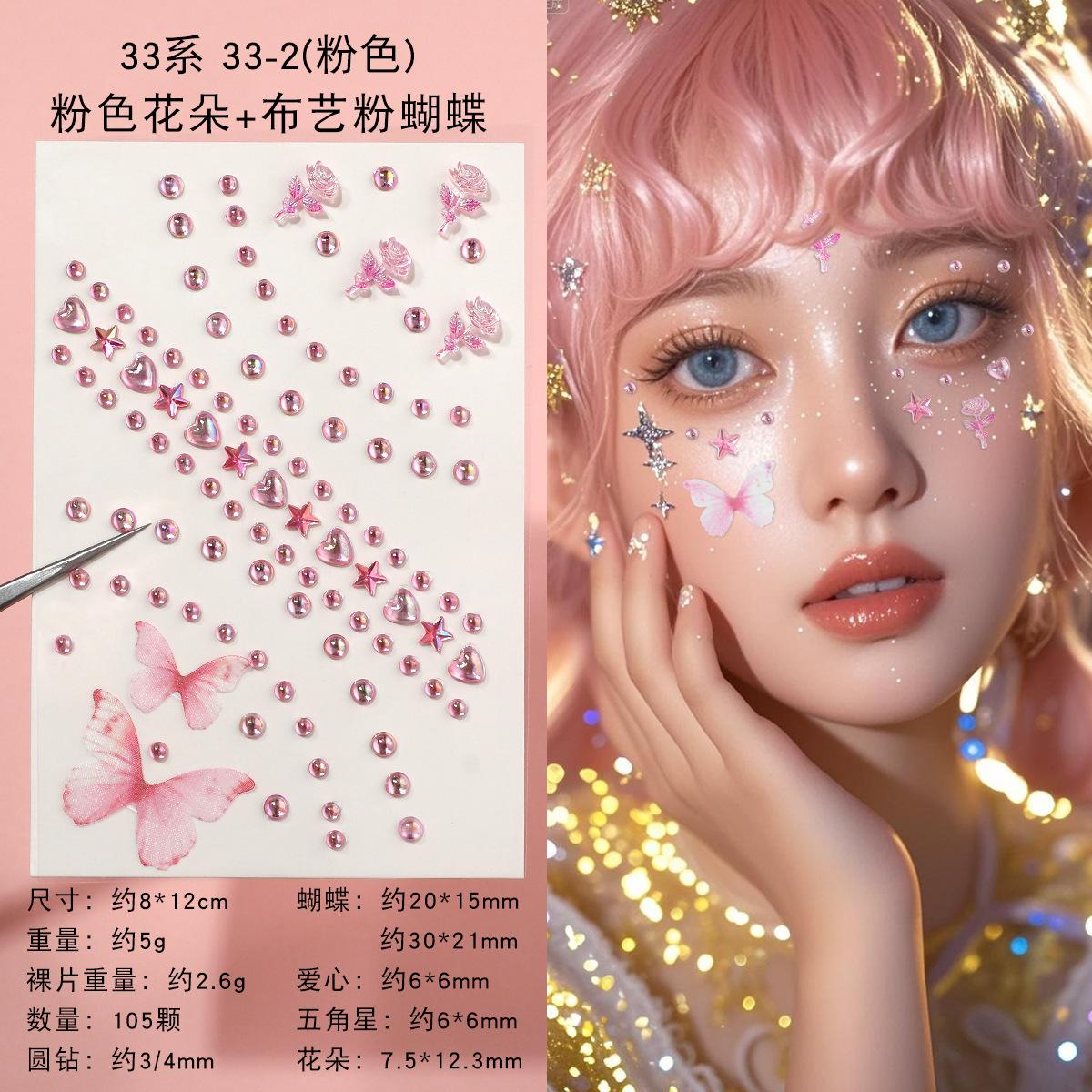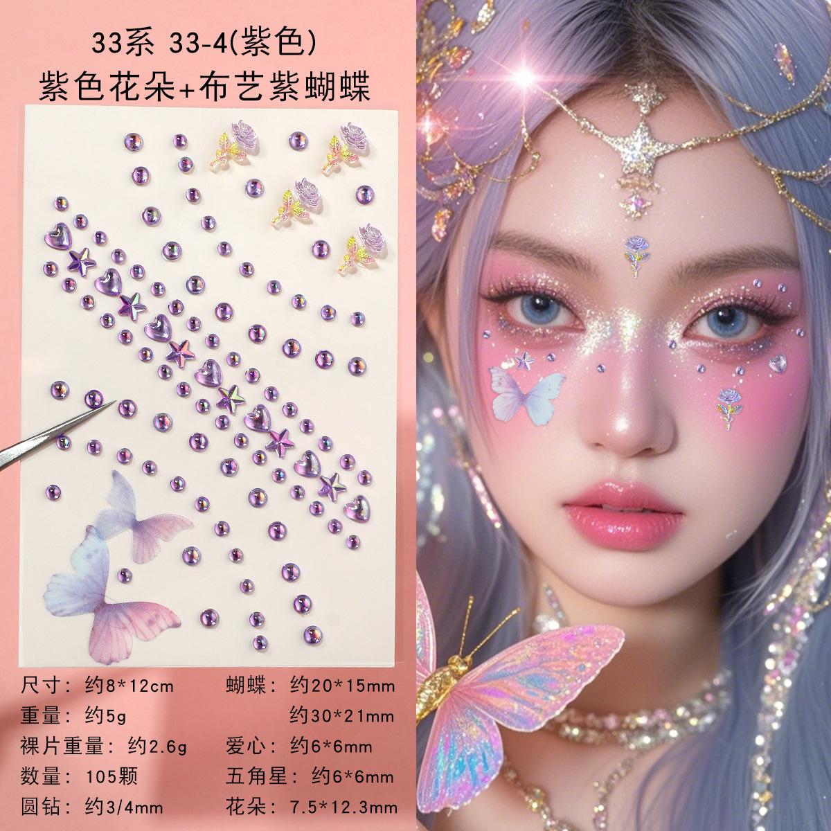 Maquillaje de Ojos Pegatinas de Diamantes Pegatinas de Maquillaje para Niños Pegatinas para la Cara Mariposa Perla Pegatinas de Diamantes Escenario Pedrería Pegatinas para Cejas