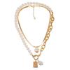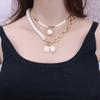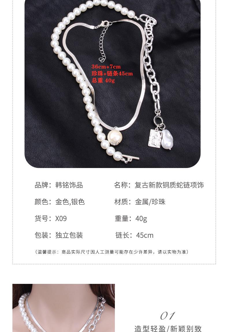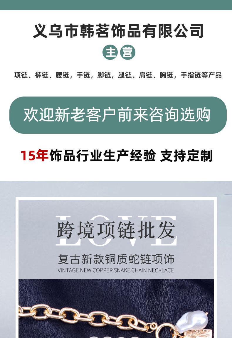 Collar transfronterizo europeo y americano, nuevo collar vintage de cadena de serpiente de cobre con perla barroca cuadrada, conjunto de collar de marca para mujer