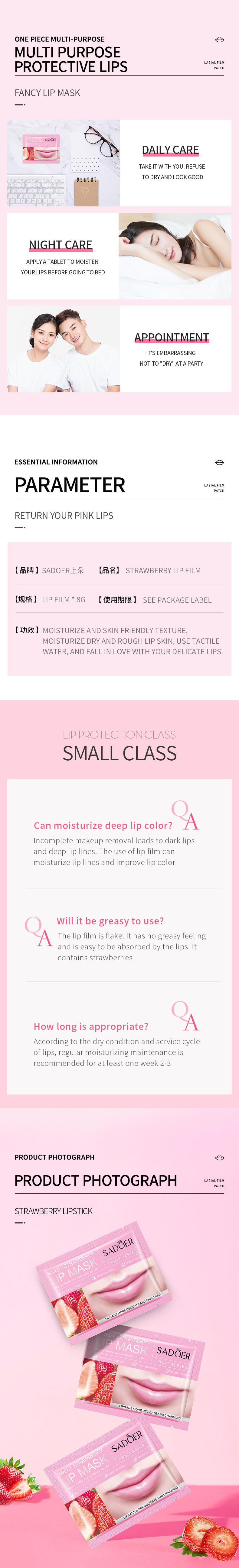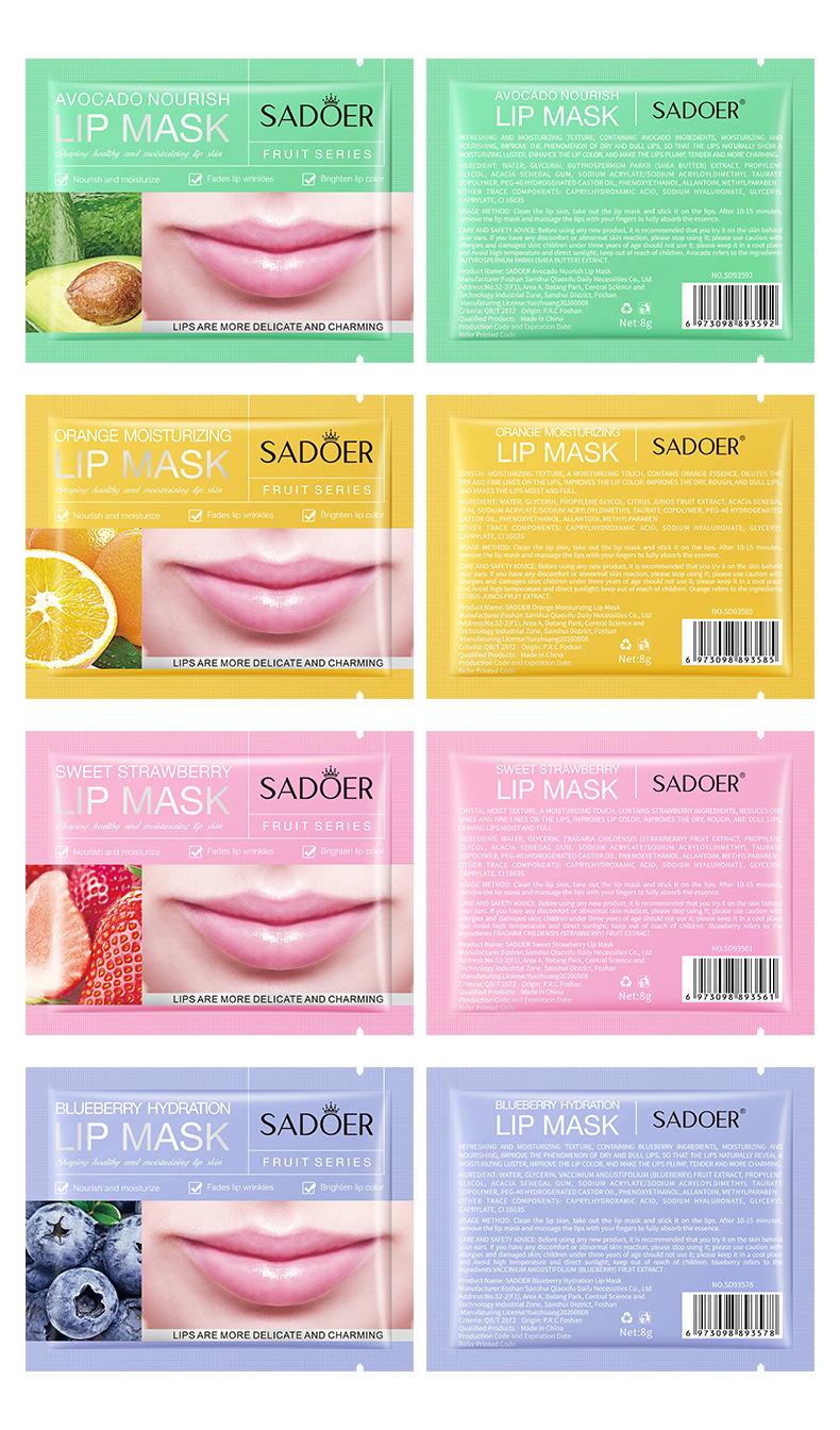 Todo película labial en inglés SADOER serie de frutas de aguacate película labial hidratante Mascarilla labial comercio exterior transfronterizo