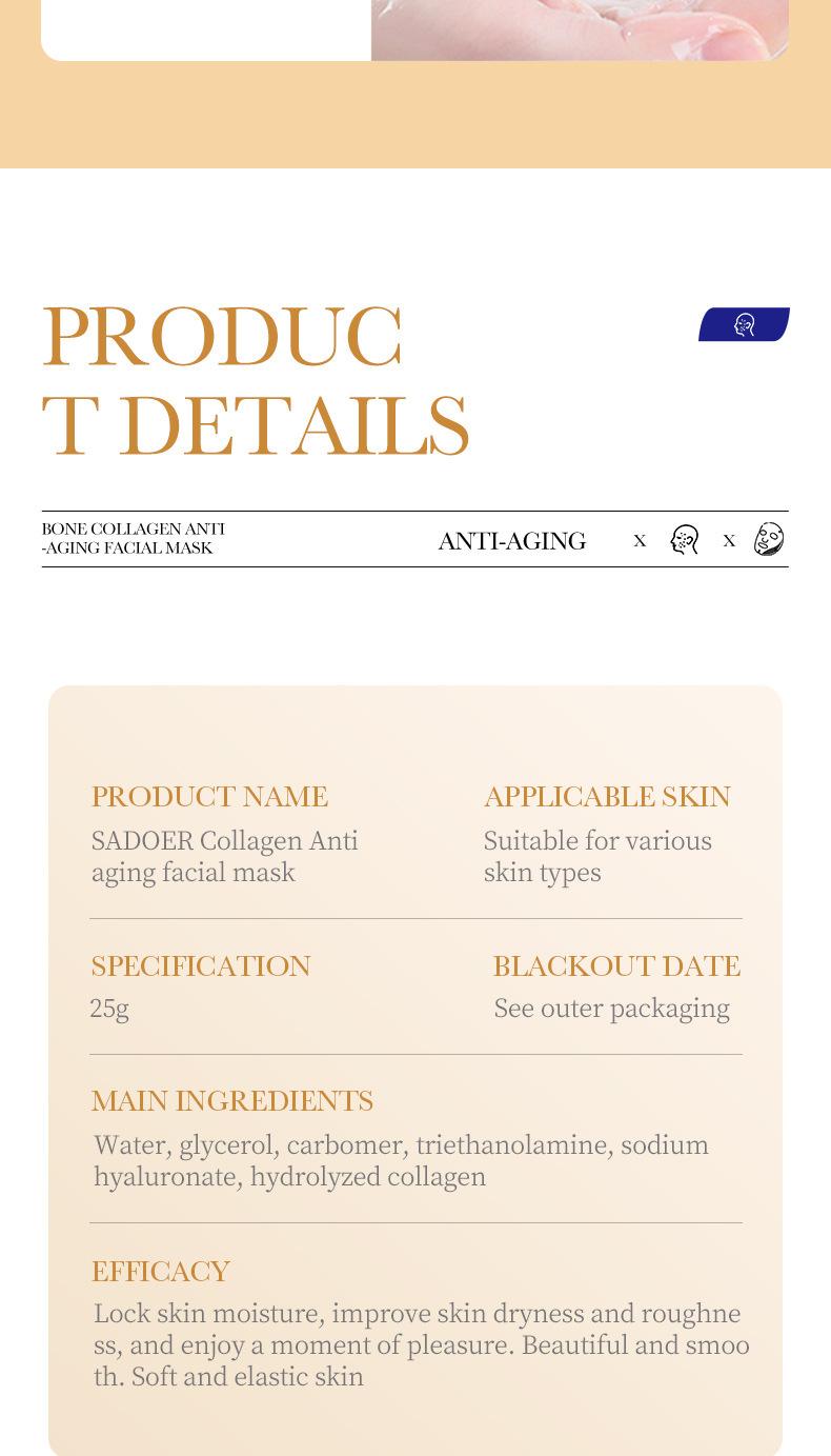 Sadoer Mascarilla Antiarrugas de Colágeno Hidratante Reafirmante Iluminadora Hidratante de Verano Productos para el Cuidado de la Piel Cosméticos