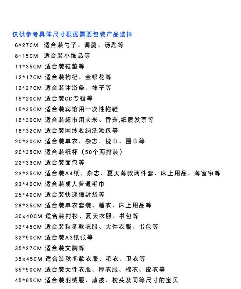 Bolsas de plástico: bolsas CPE esmeriladas, bolsas OPP, bolsas PP, bolsas PE, bolsas PO, bolsas autoadhesivas, bolsas sobre, bolsas autoadhesivas para tarjetas, bolsas para pulseras, bolsas para tarjetas, bolsas para papelería, bolsas para joyas, bolsas para calcetines, bolsas para prendas de vestir, bolsas para etiquetas, bolsas planas, bolsas de hueso denso, bolsas con cierre ziplock, bolsas con cierre ziplock, bolsas compuestas, bolsas de burbujas, bolsas de burbujas, bolsas de algodón perlado, láminas de algodón perlado, materiales de algodón perlado con formas especiales, algodón perlado antiestático, bolsas termoencogibles de PVC, bolsas termoencogibles ecológicas de POF, bolsas de plástico transparentes sin imprimir y varias bolsas de plástico exquisitas impresas a color.