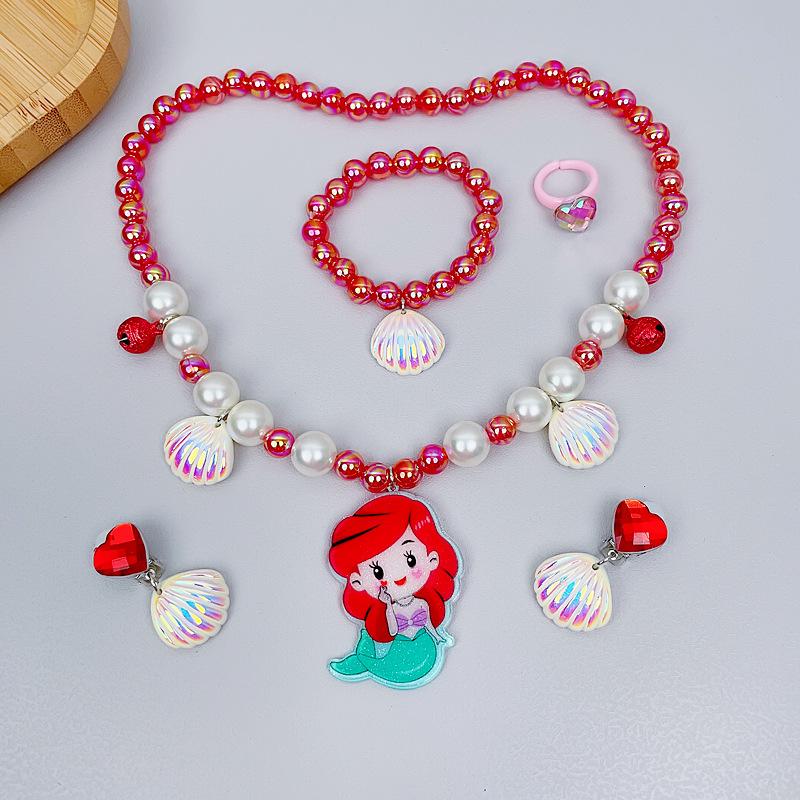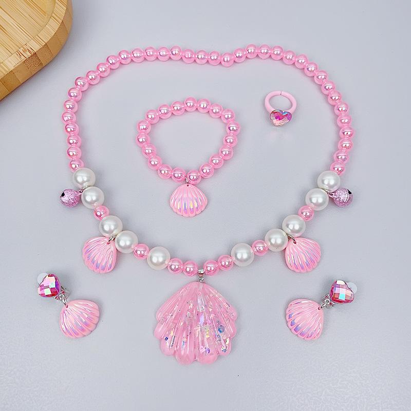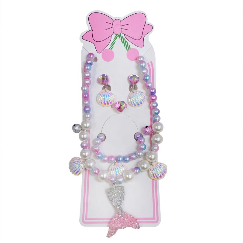 Nuevo collar de cola de sirena para niños, pulsera, traje de joyería transfronteriza, collar de perlas, joyería de concha de niña de dibujos animados