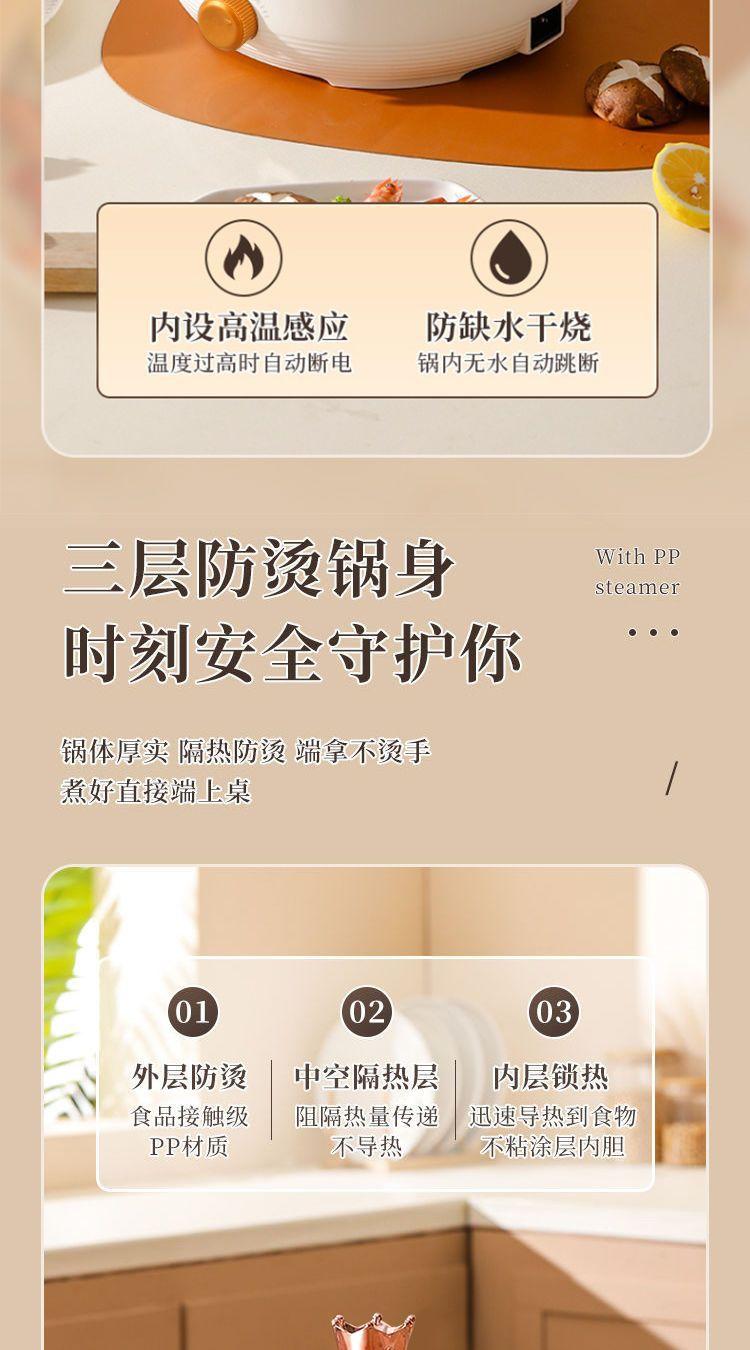 Olla caliente eléctrica doméstica alemana Olla de cocina multifuncional Olla eléctrica integrada Sartén antiadherente Wok eléctrico Olla eléctrica para cocinar Vaporera eléctrica
