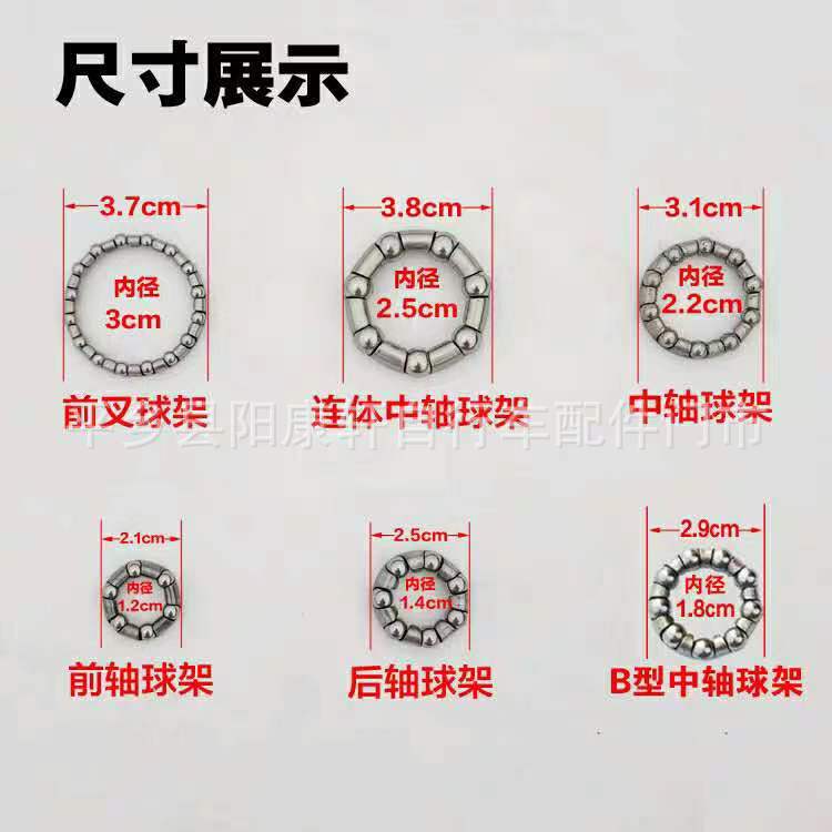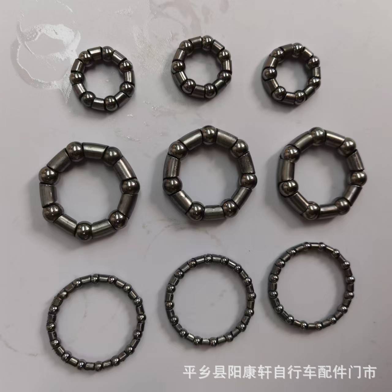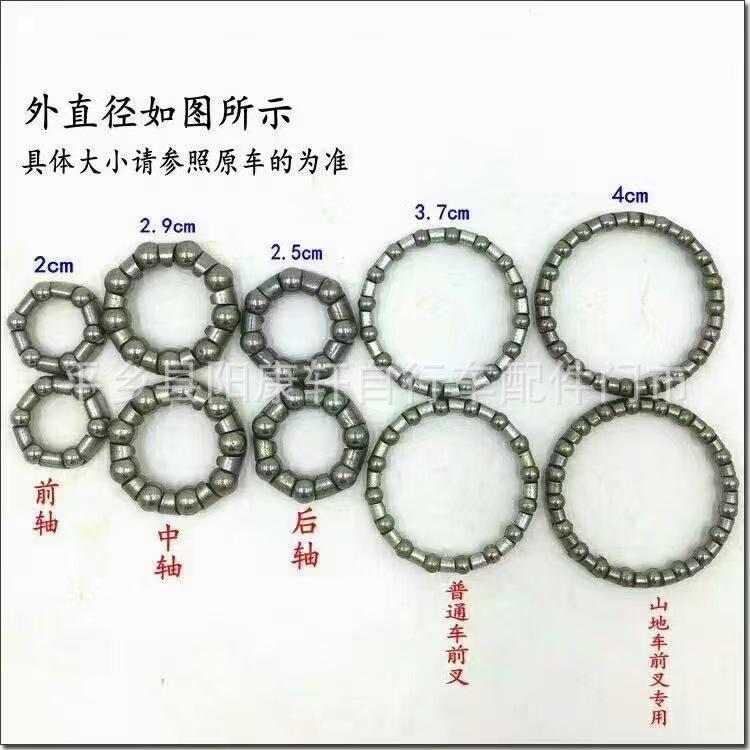 El más pequeño es la jaula de bolas del buje delantero, con un diámetro de aproximadamente 20.5 mm, 7 bolas;