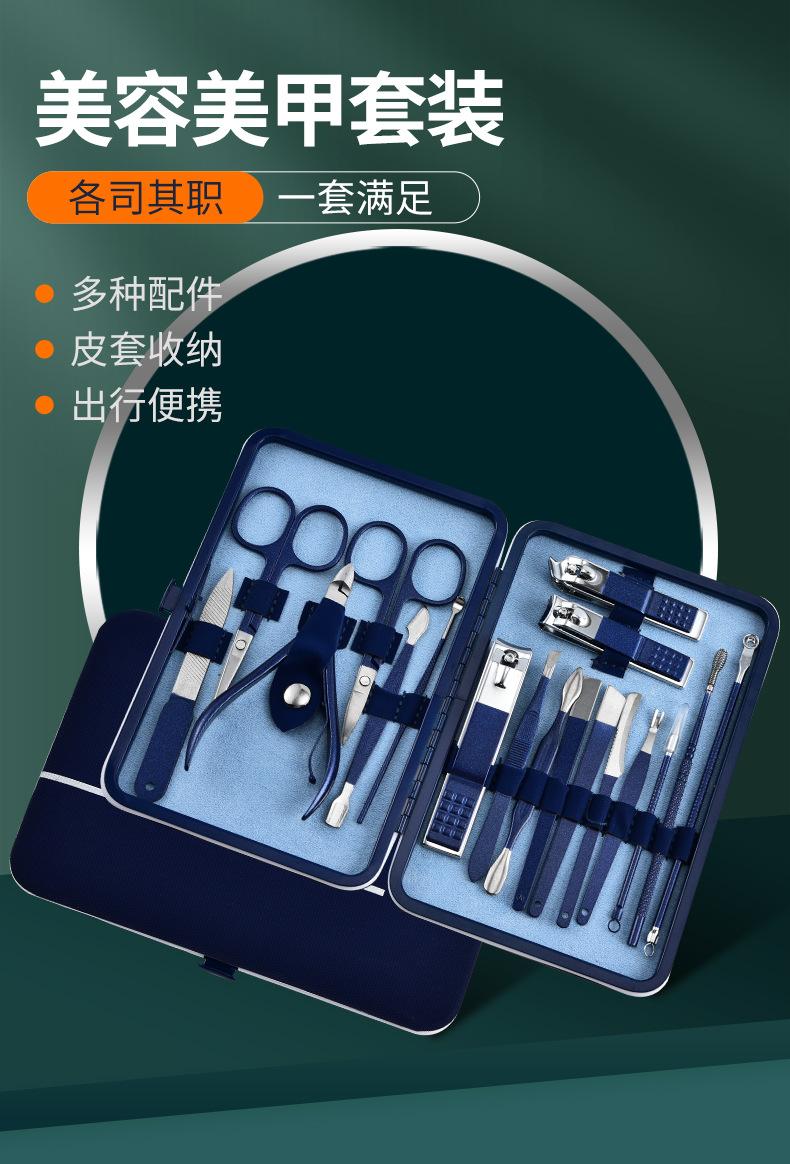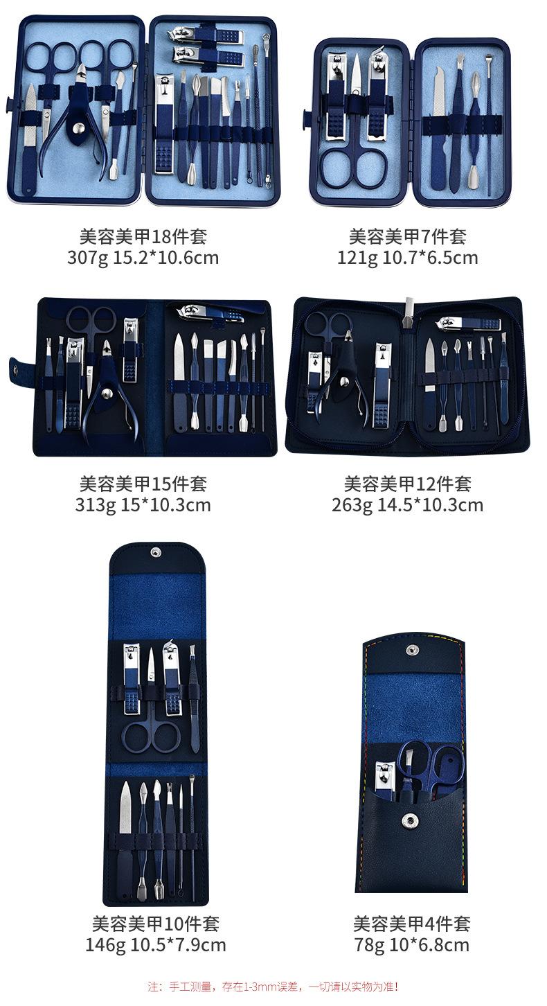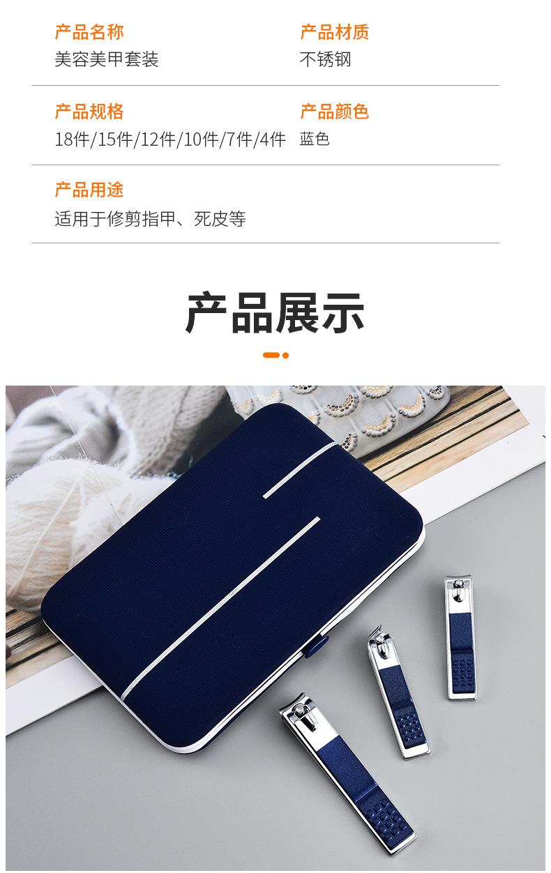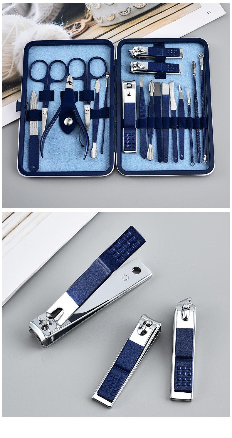 Transfronterizo en stock cortaúñas traje manicura herramientas para uñas azul 18 piezas cortaúñas pico de halcón cortaúñas juego completo
