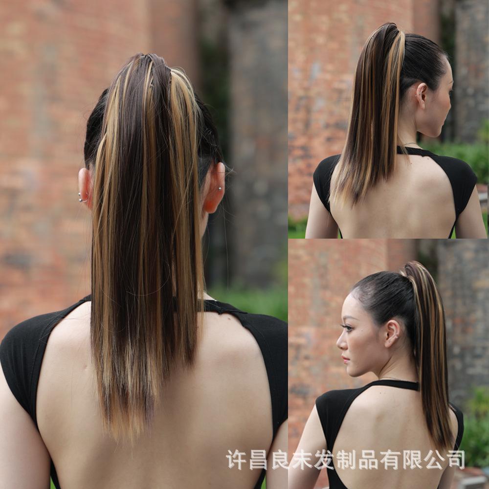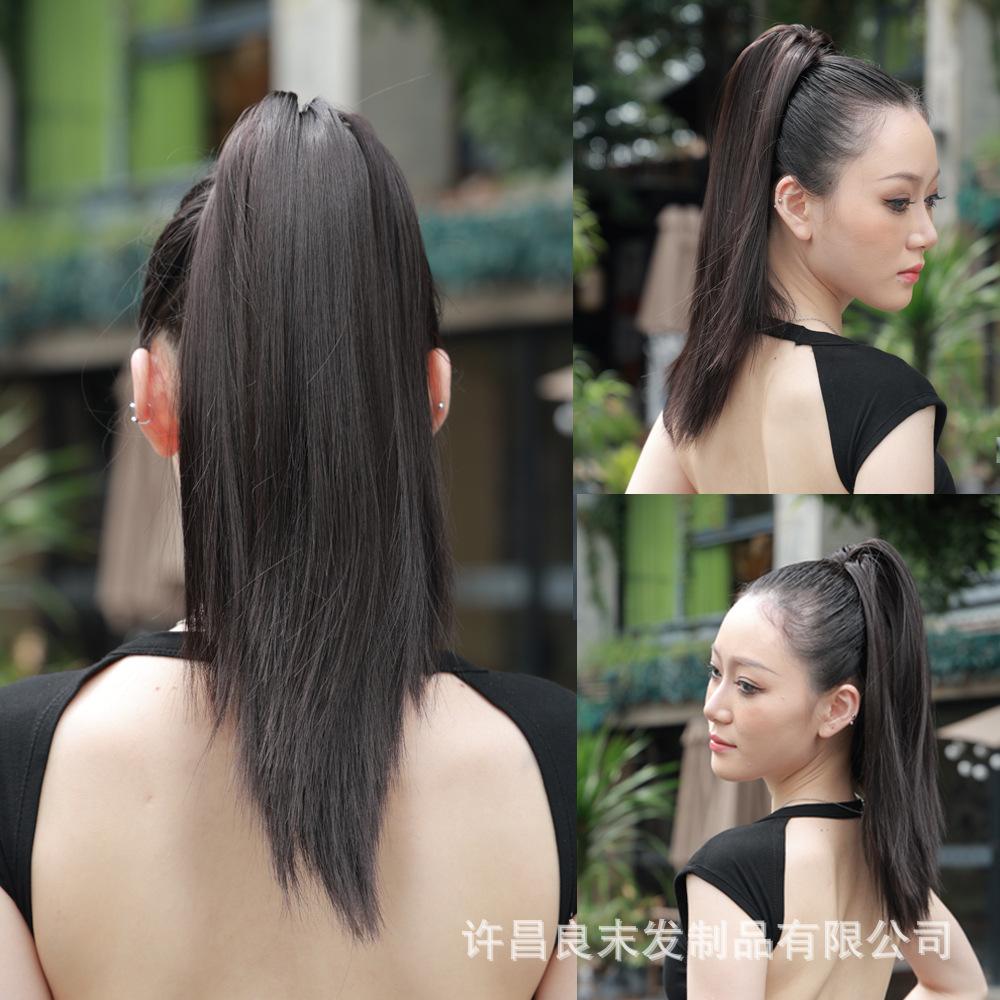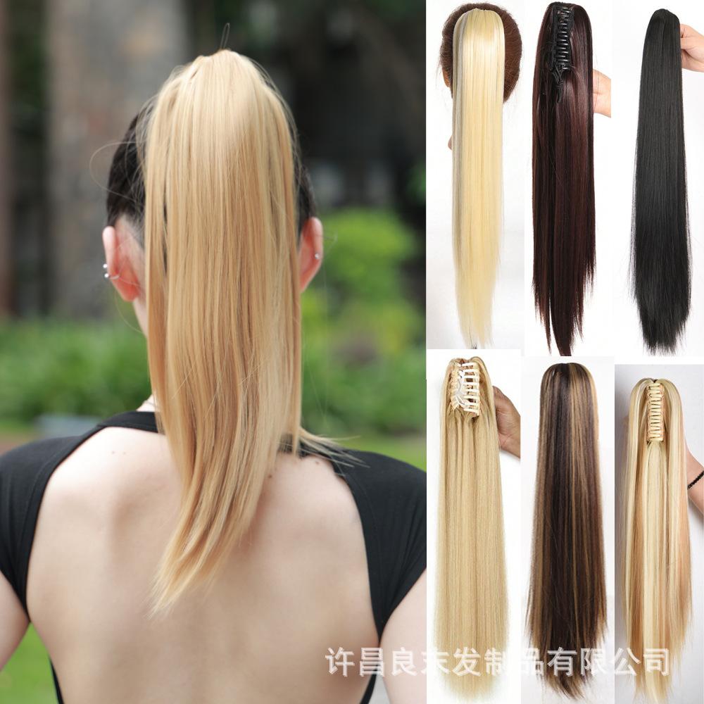 Fabricantes transfronterizos mayoreo clip grande para agarrar cola de caballo larga recta extendida cabello europeo y americano cabello largo recto sintético fibra química cola de caballo