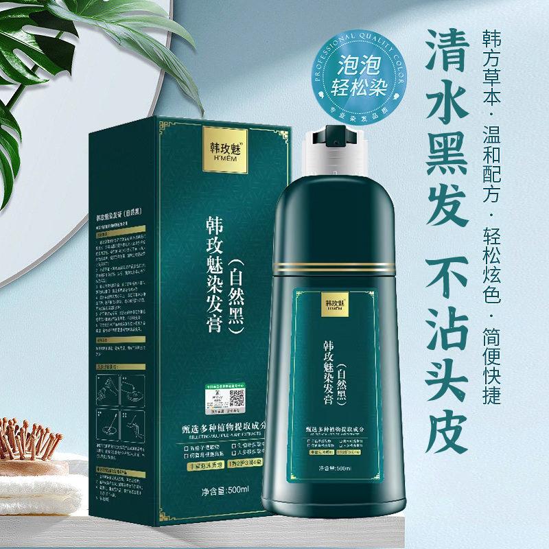 Fragrant and pleasant black dye cream 1 box, Han mei mei dark green style (chestnut brown 500ml/bottle), Han m...
